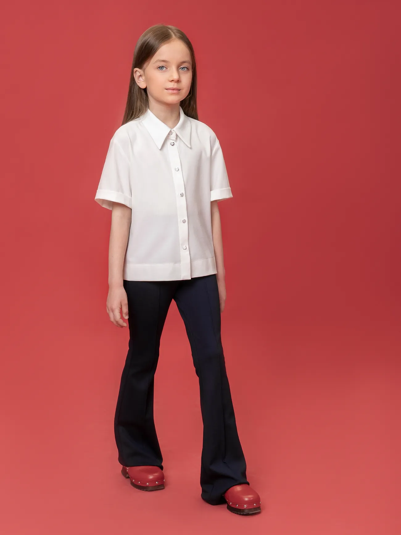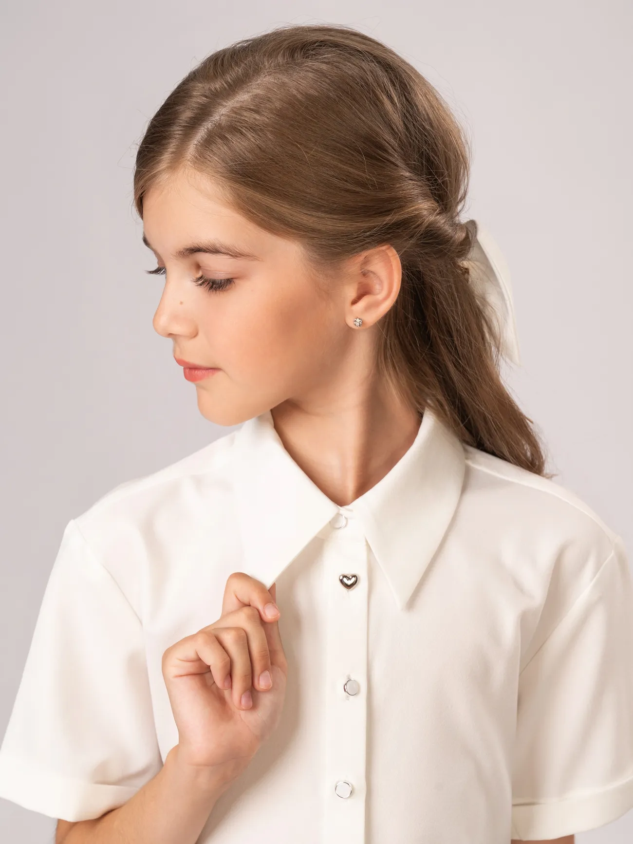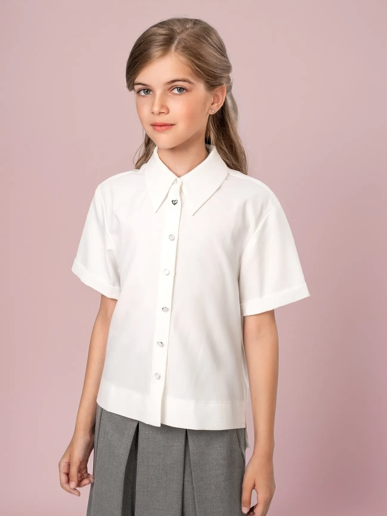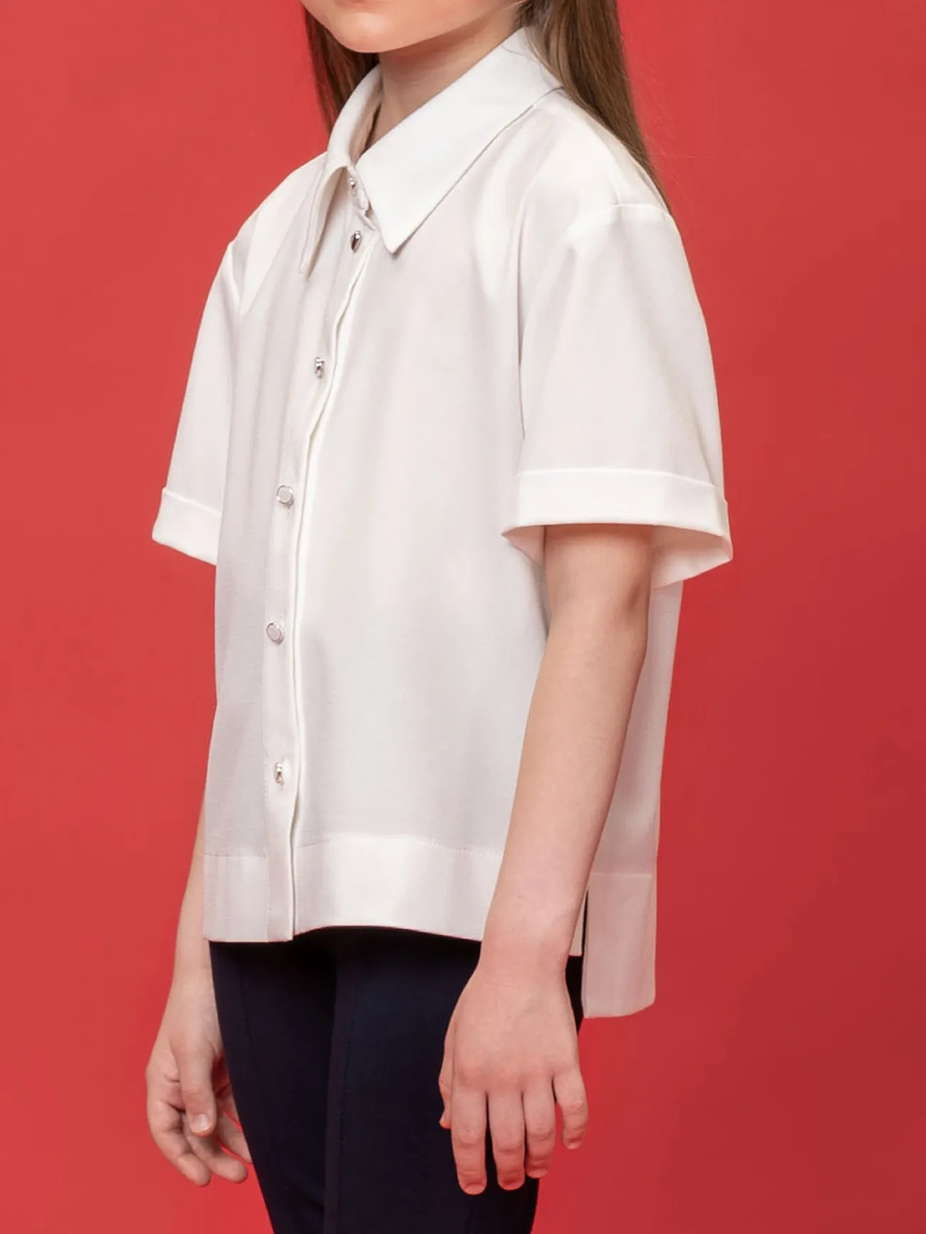 Укороченная рубашка с декоративными пуговицами – свежий взгляд на классические рубашки, сочетающий в себе официальную строгость и каплю кокетства. Рубашка прекрасно впишется в школьный гардероб, но не оставит обладательницу без нотки индивидуальности. Лаконичная, сдержанно нарядная, эта модель выполнена из легкой, практичной и приятной на ощупь ткани. Рубашка отлично сочетается с юбками, брюками, юбками-шортами Ole!twice, прекрасно вписывается в образы для официальных мероприятий, посещения театра, прогулок и фотосессий.
