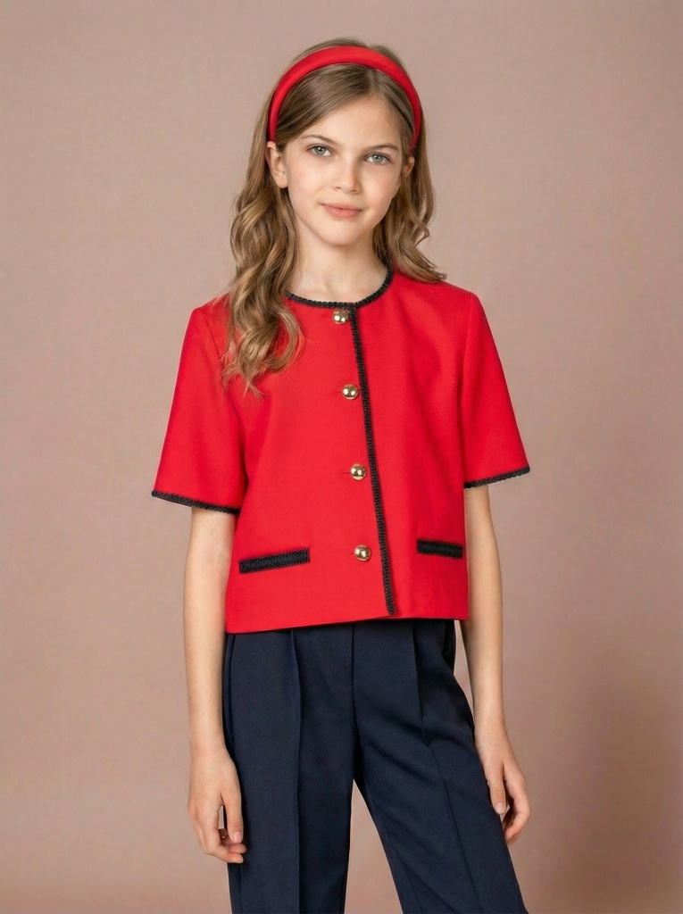 Жакет из трикотажа с коротким рукавом - стильный и яркий акцент для образа. Благодаря плотному, но мягкому материалу жакет комфортно сидит, не стесняет движений и сохраняет аккуратный вид даже при активной носке.