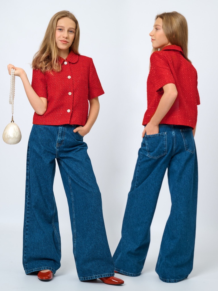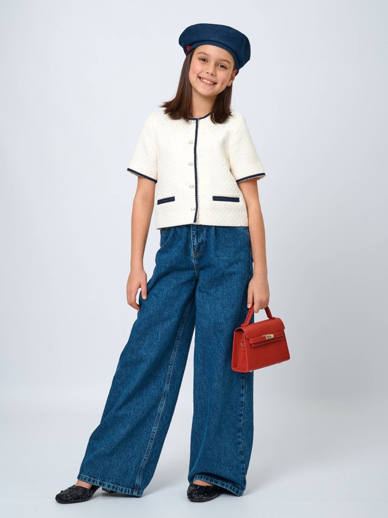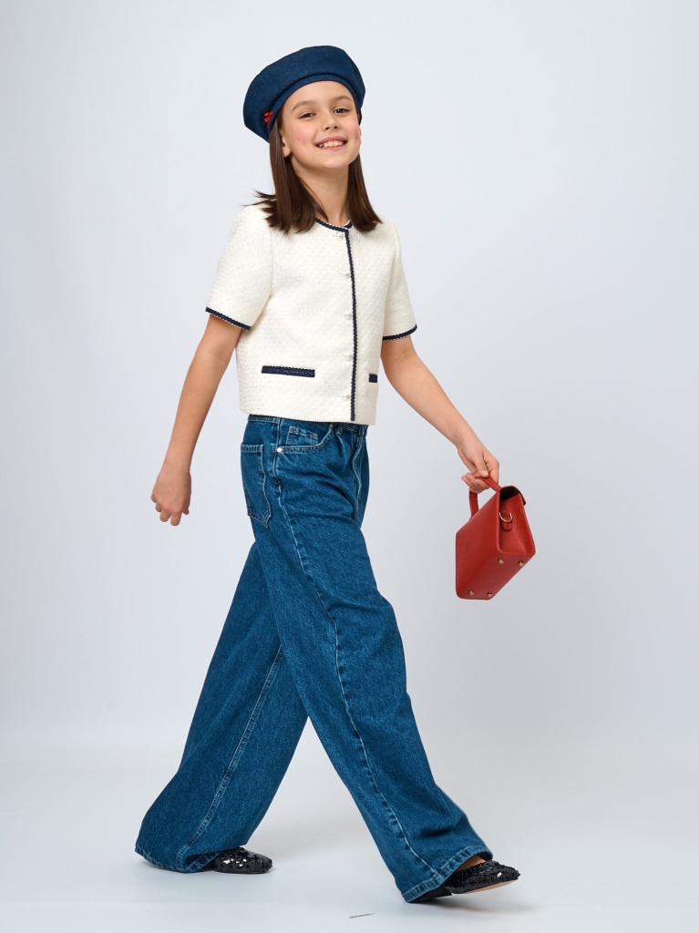 Стильные джинсы трендовой модели палаццо, выполнены из премиальной плотной джинсовой ткани. Визуально удлиняют силуэт и создают хрупкий и элегантный образ, отлично сочетаются как с праздничным и официальным верхом, так и с более комфортным и расслабленным. Регулирующая резинка в поясе позволяет добиться оптимальной посадки по талии.