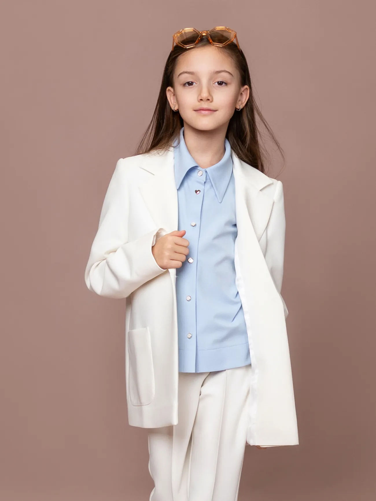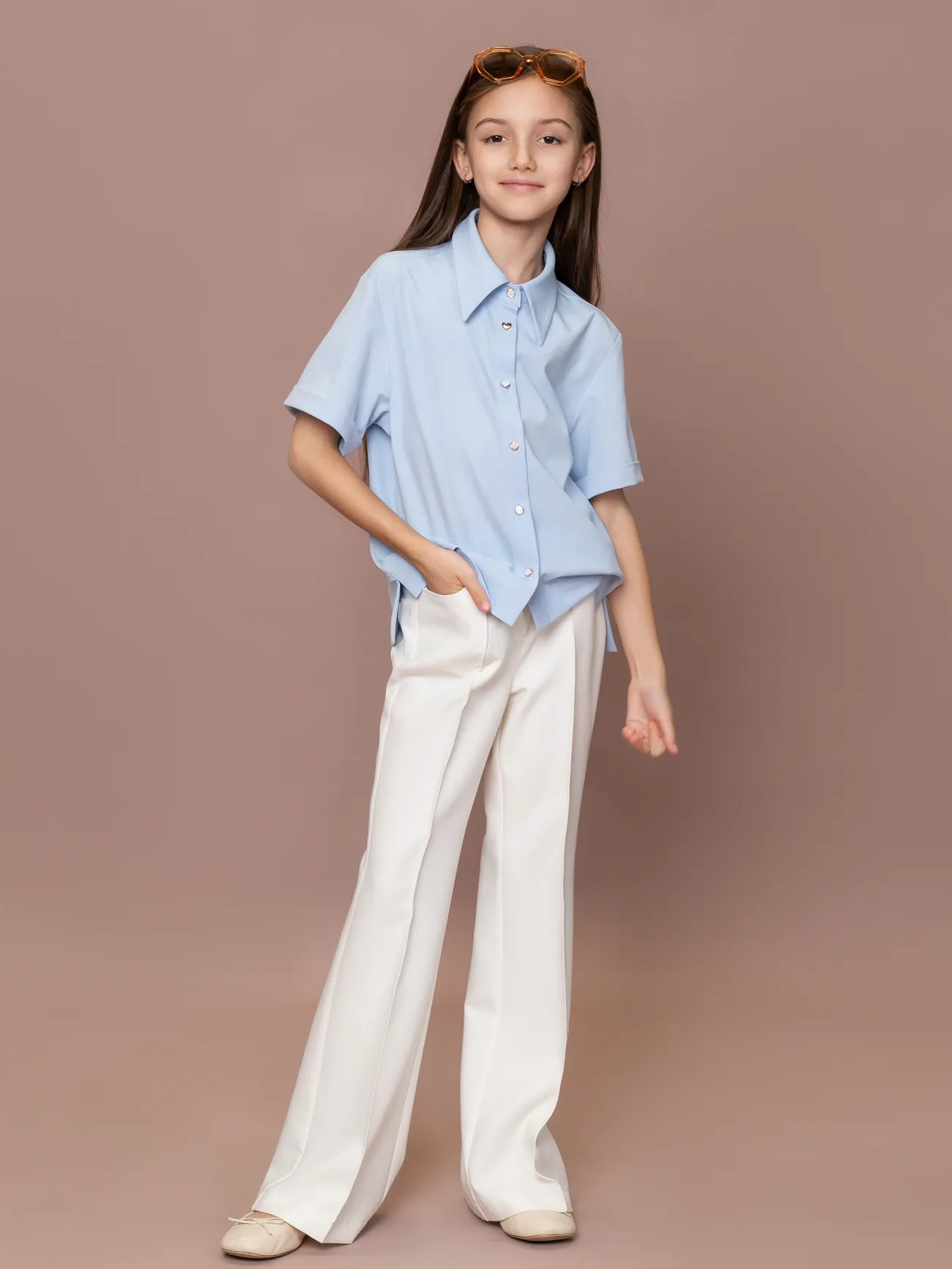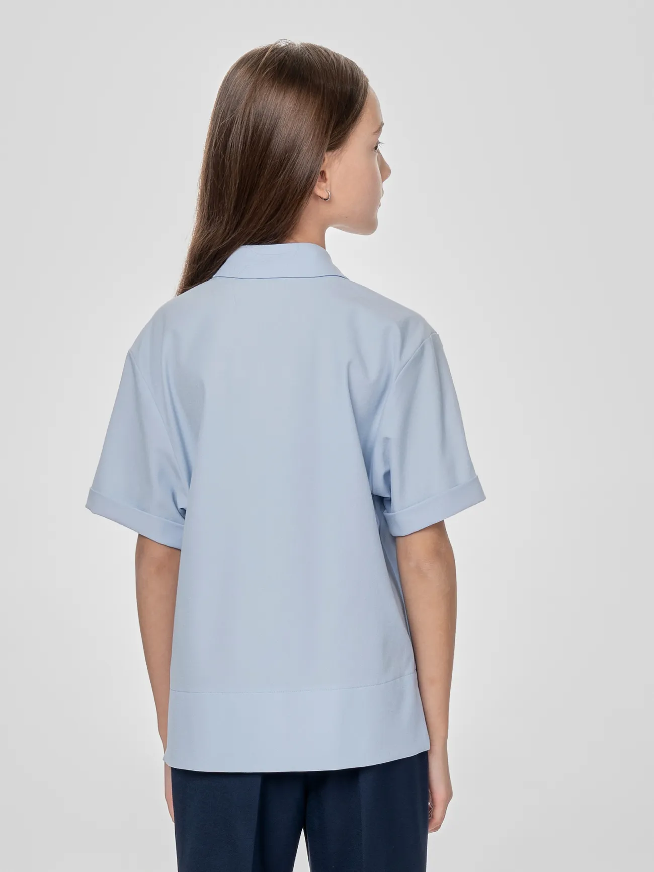 Укороченная рубашка с декоративными пуговицами – свежий взгляд на классические рубашки, сочетающий в себе официальную строгость и каплю кокетства. Рубашка прекрасно впишется в школьный гардероб, но не оставит обладательницу без нотки индивидуальности. Лаконичная, сдержанно нарядная, эта модель выполнена из легкой, практичной и приятной на ощупь ткани. Рубашка отлично сочетается с юбками, брюками, юбками-шортами Ole!twice, прекрасно вписывается в образы для официальных мероприятий, посещения театра, прогулок и фотосессий.