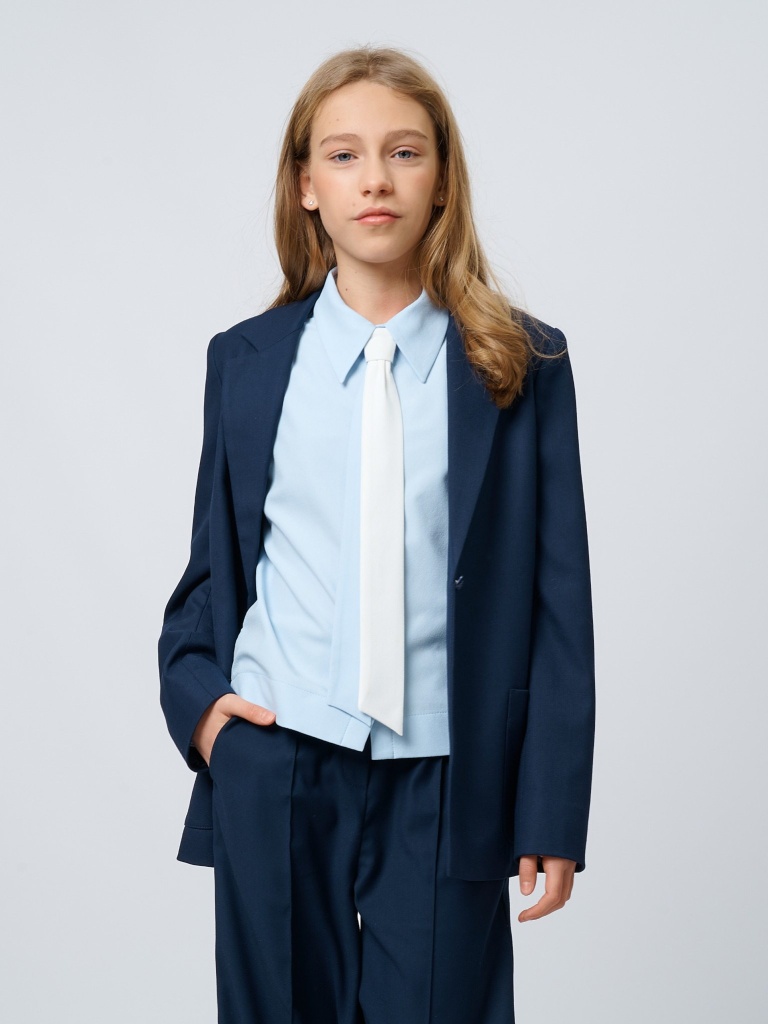 Жакет выполнен из премиальной костюмной ткани, сохраняющей отличный внешний вид даже при ежедневной носке.