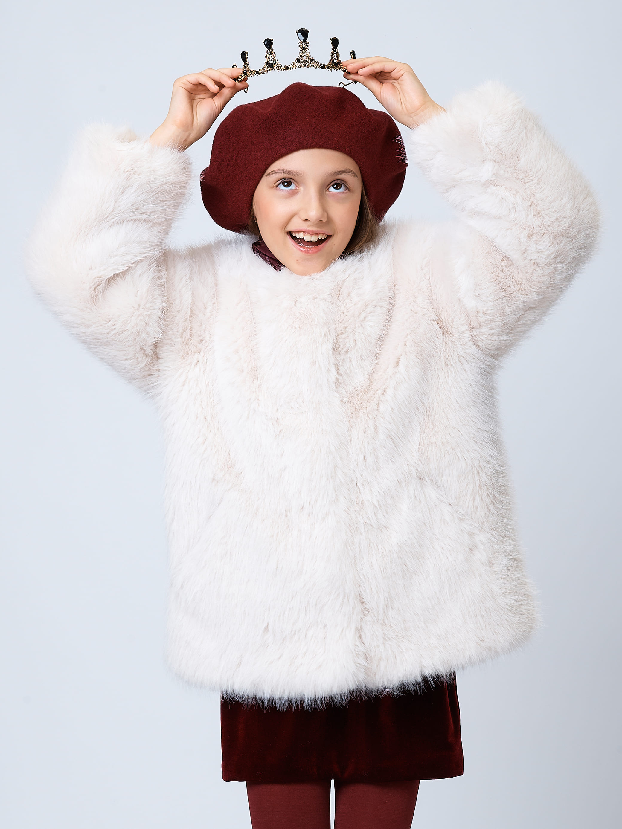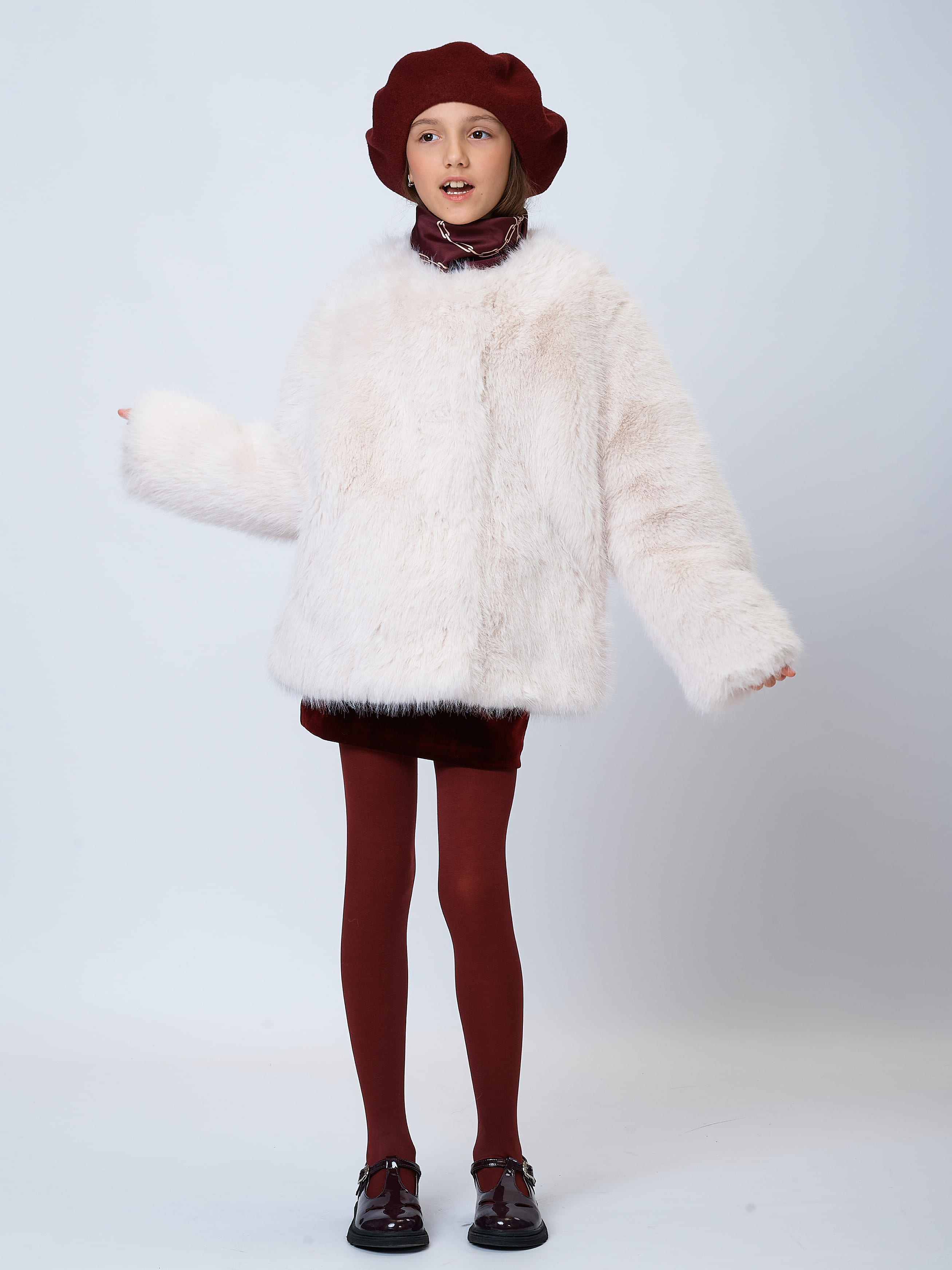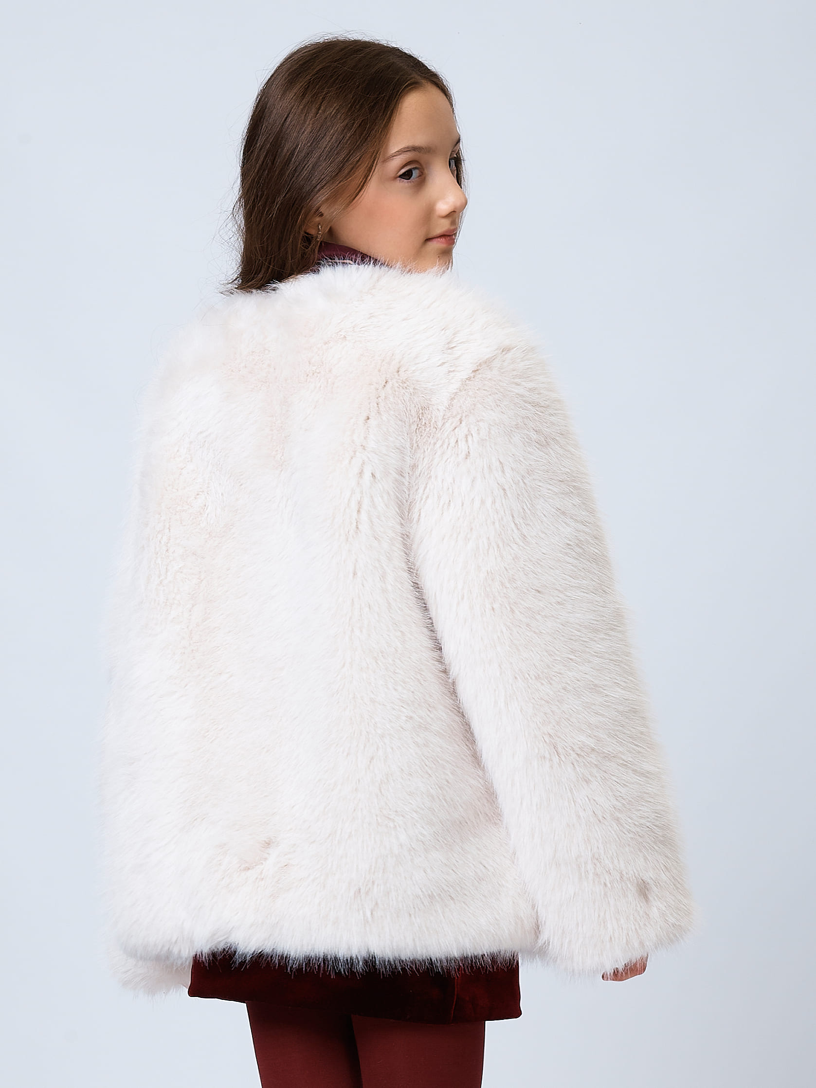 Меховое пальто укороченное с натуральным утеплителем в цвете: Молочный