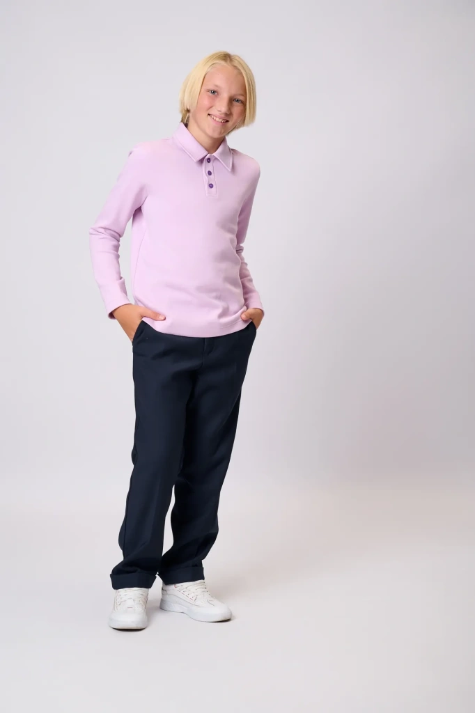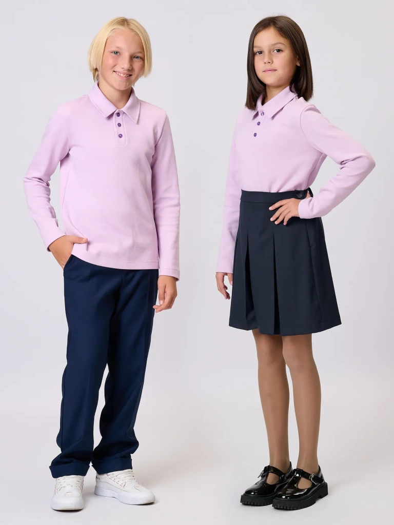 Базовое поло унисекс - практичный и комфортный выбор для школы и активного повседневного образа. Изготовлена из мягкого дышащего трикотажа, который приятен к телу и хорошо держит форму. Классический отложной воротник, планка с пуговицами и прямой крой делают эту модель универсальной - она одинаково хорошо подходит и девочкам, и мальчикам. Отлично сочетается с брюками, юбками, пиджаками.