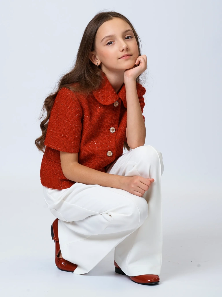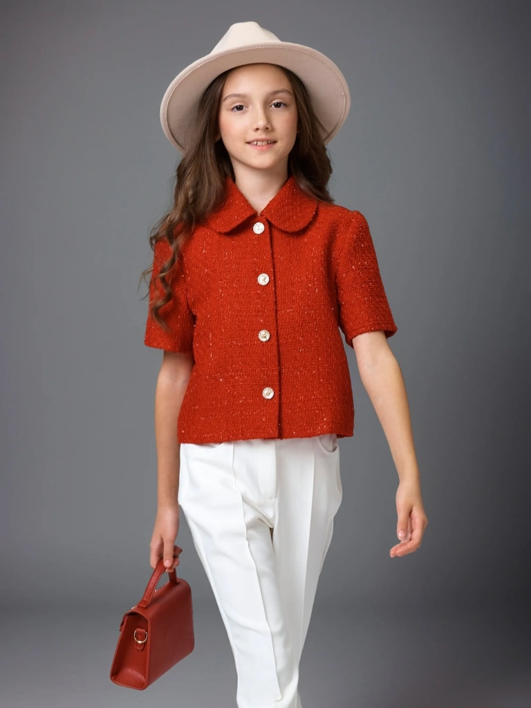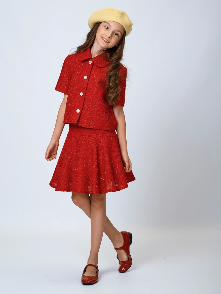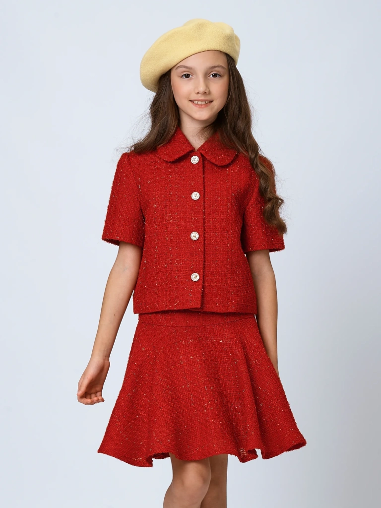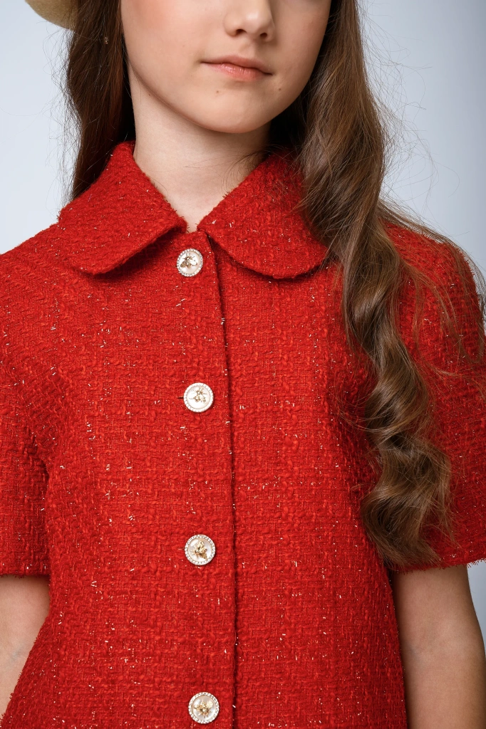 Жакет из твида с воротником и коротким рукавом в цвете: Красный