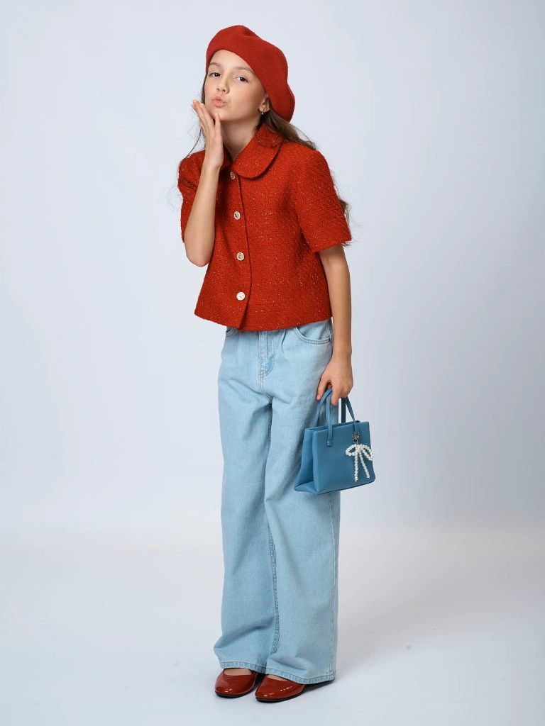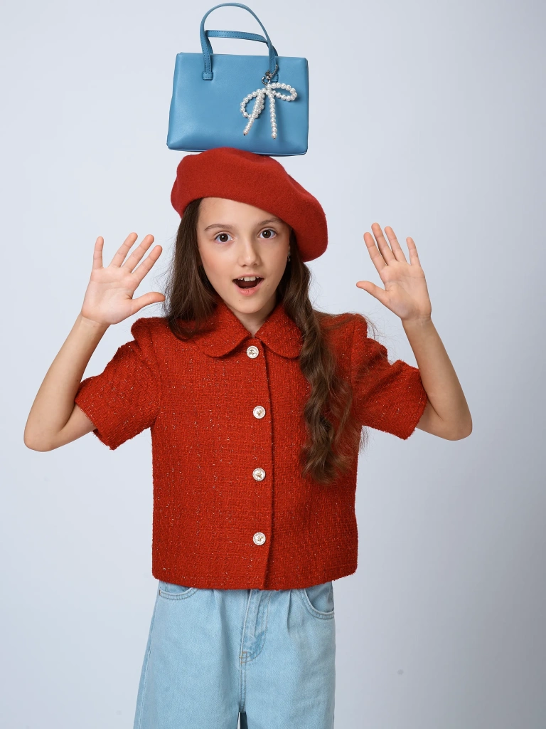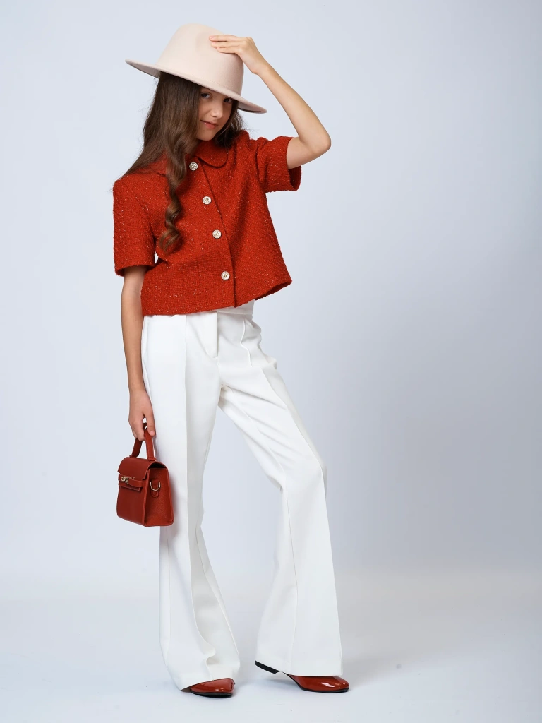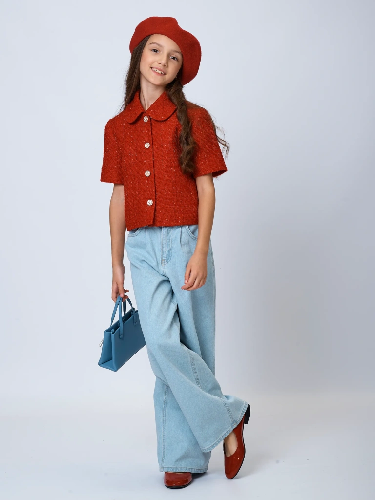 Жакет из твида с воротником и коротким рукавом в цвете: Красный
