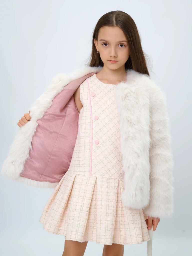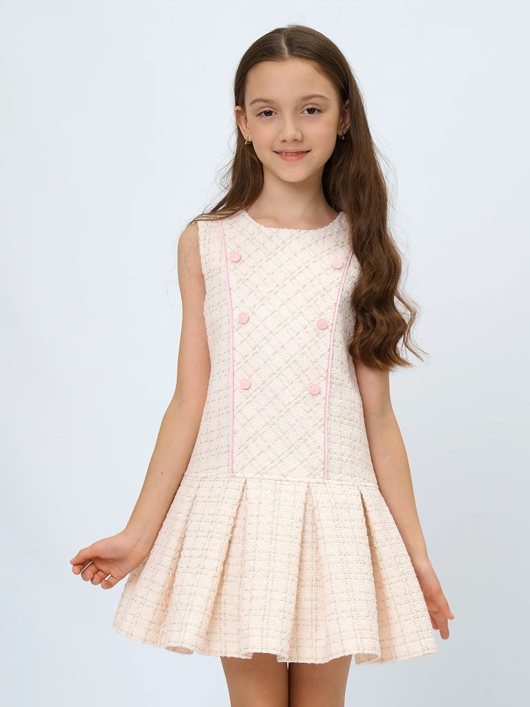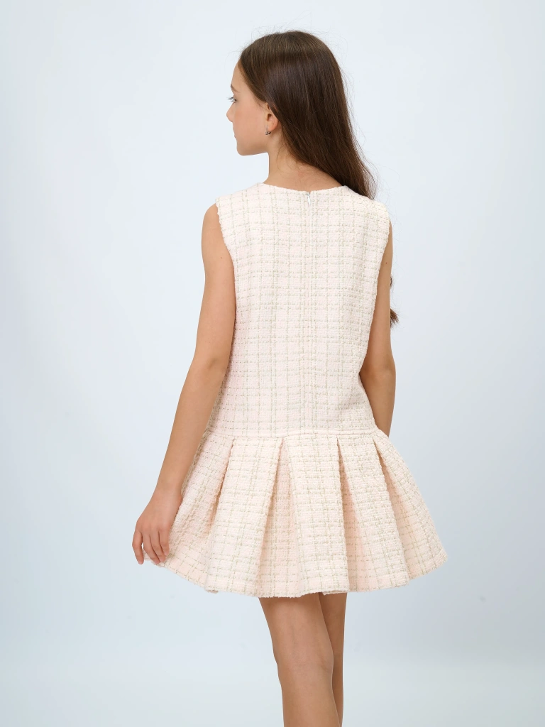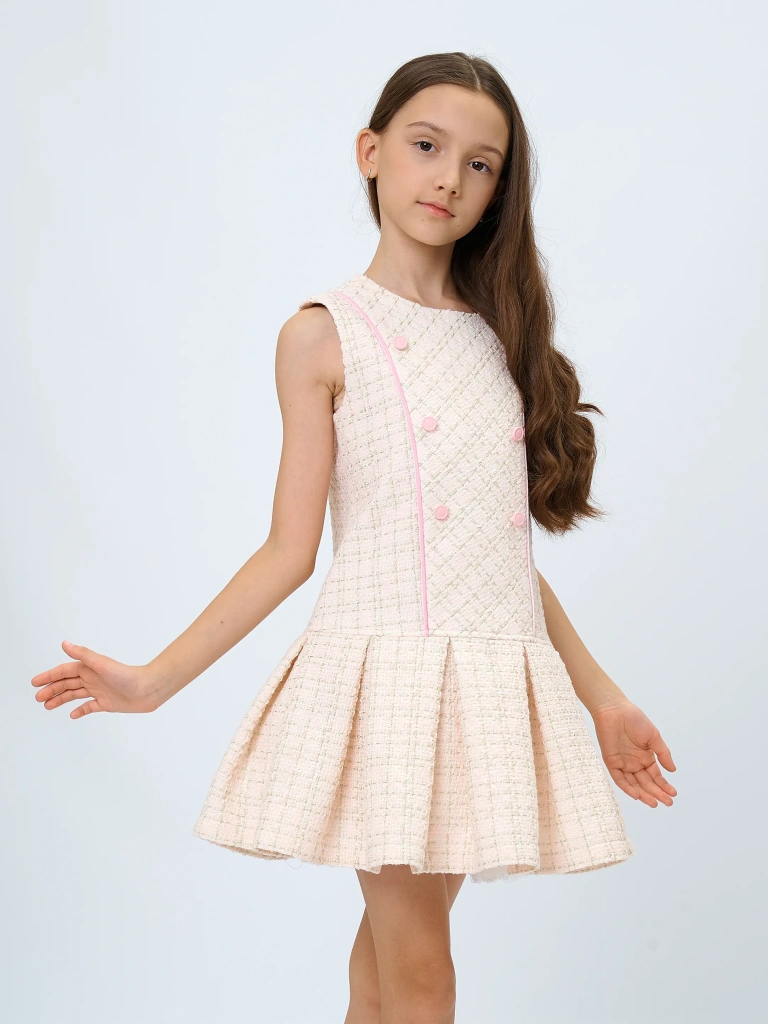 Стильное платье-трапеция из твида - идеальный выбор для юных леди, которые ценят комфорт и элегантность. Классический фасон в сочетании с фактурной тканью создает утонченный образ, который подойдет как для праздников, так и для повседневных выходов.