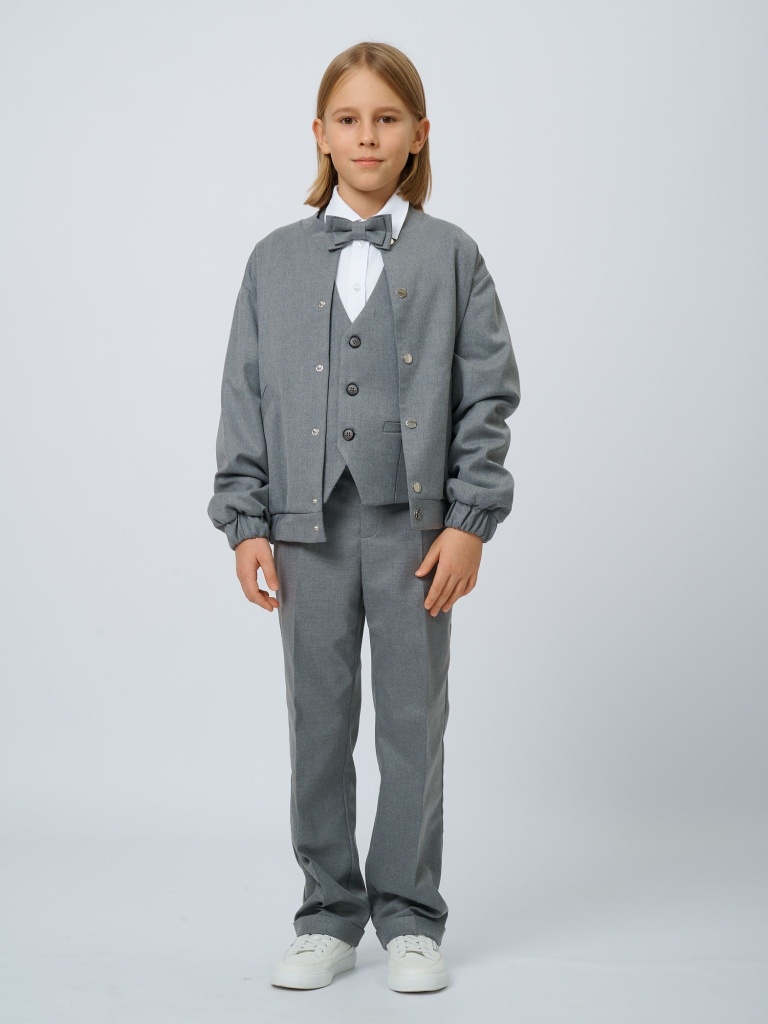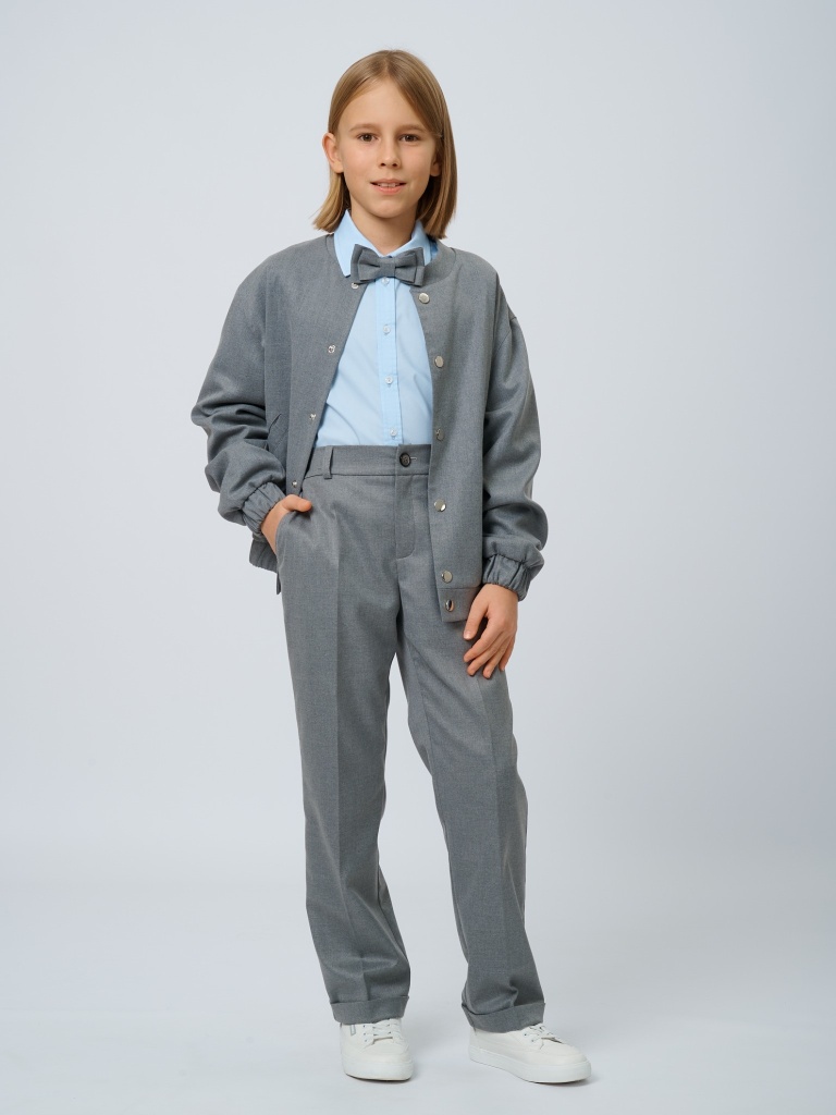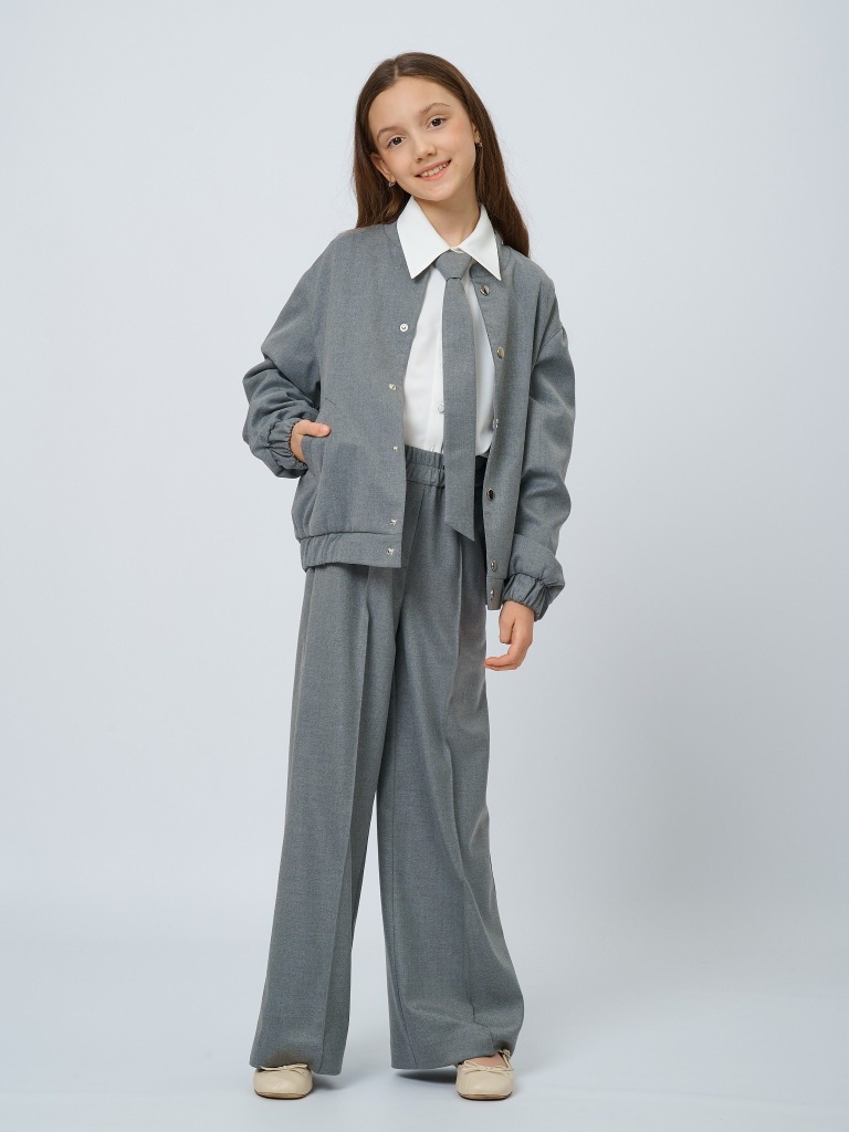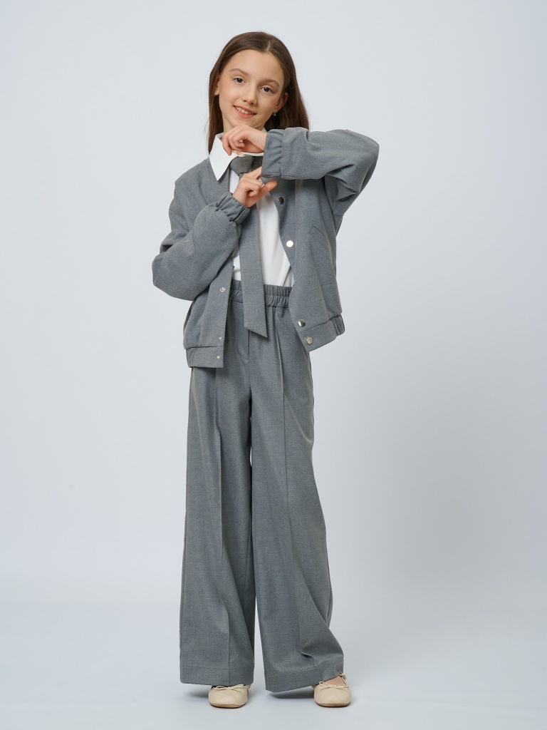 Бомбер из костюмной ткани на кнопках в цвете: Серый