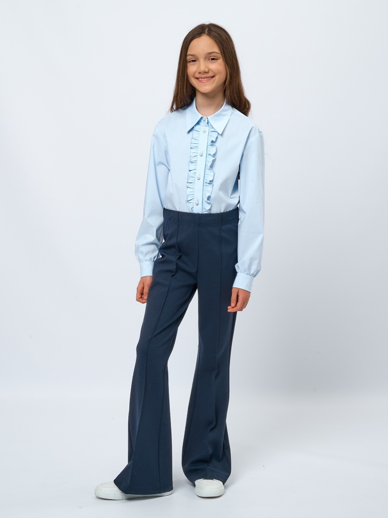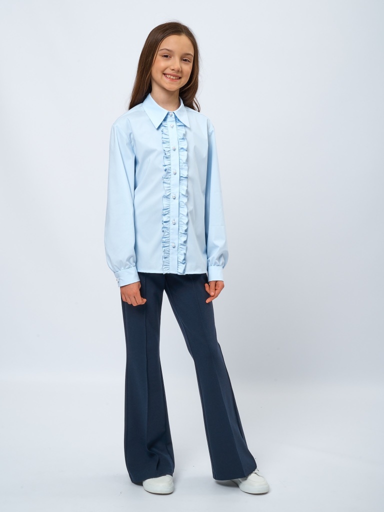 Блуза с оборкой по планке - лаконичная, сдержанно нарядная, она будет уместна для любого случая – для школы, для праздника, для повседневной носки, для прогулок и походов в театр.