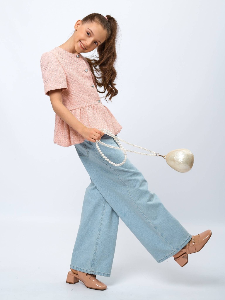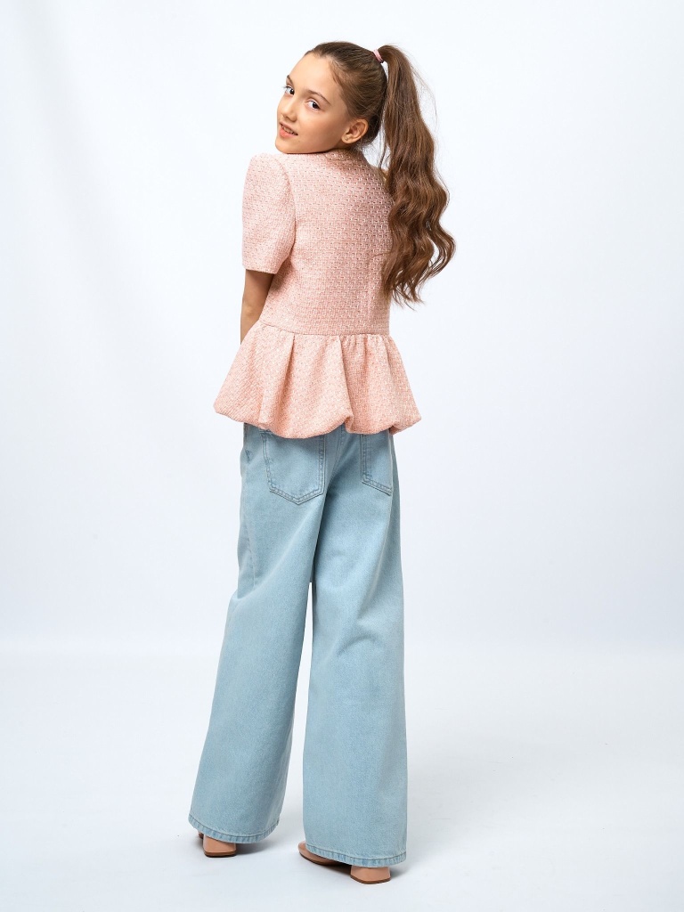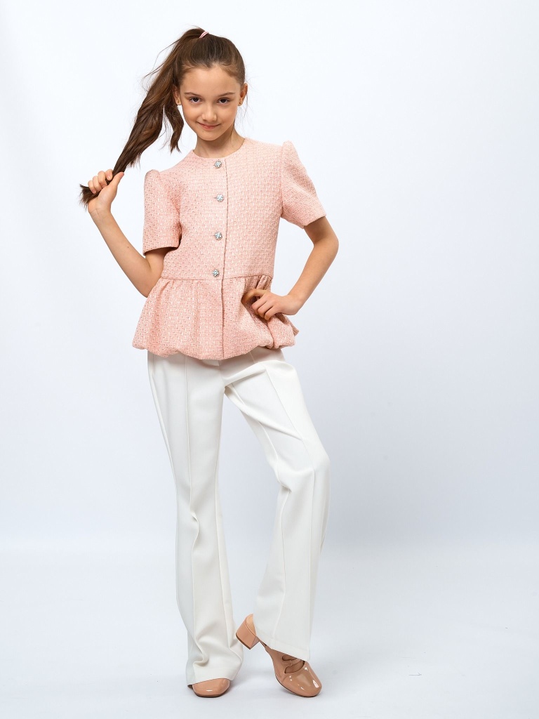 Жакет с баской из твида в цвете: Розовый