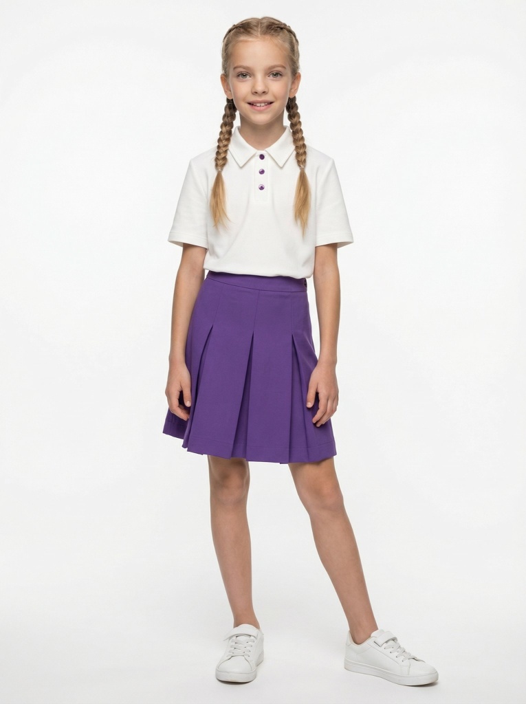Юбка-шорты в складку – стильная и практичная модель для школьного и повседневного гардероба. Юбка-шорты отличается интересным кроем: спереди это юбочка со встречной складкой, сзади – шорты строгого силуэта. Модель имеет универсальную длину чуть выше колена и прекрасно сочетается с жилетами, жакетами и бомберами из школьной и повседневной коллекций Ole!twice. Пояс с регулирующейся резинкой обеспечивает идеальную посадку.