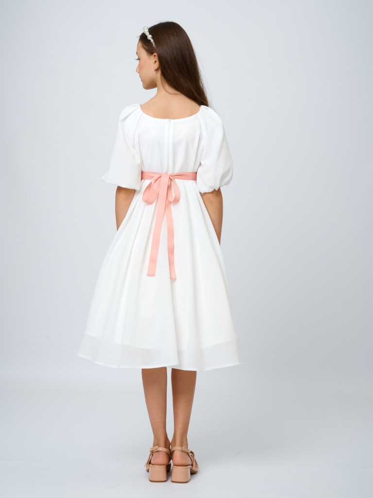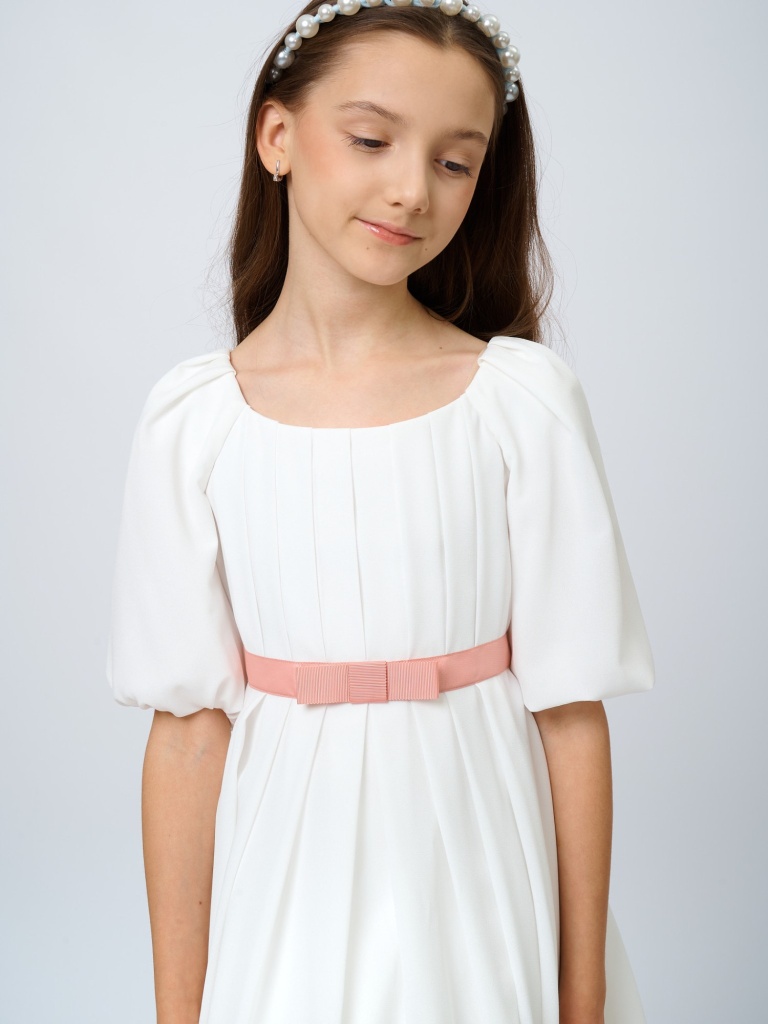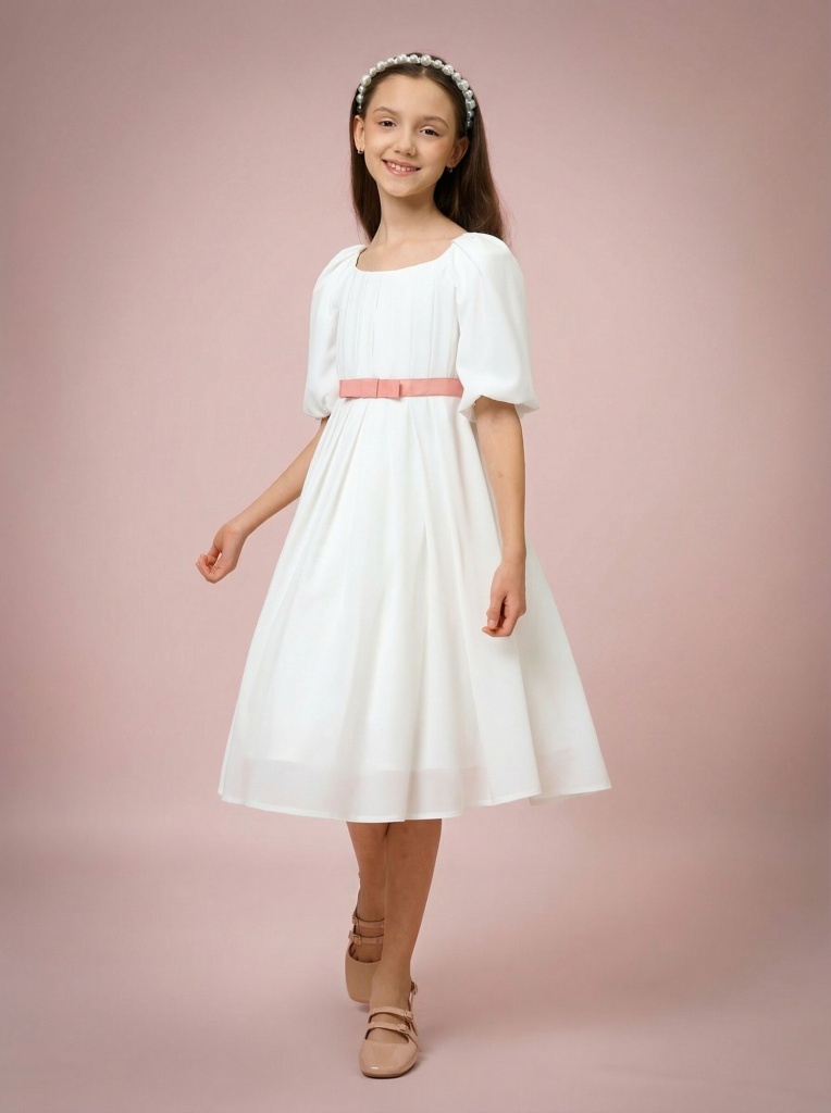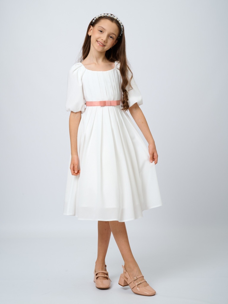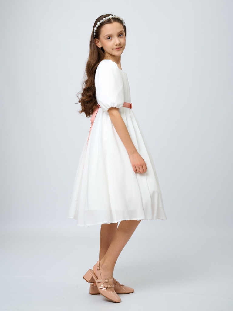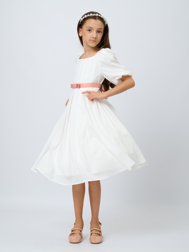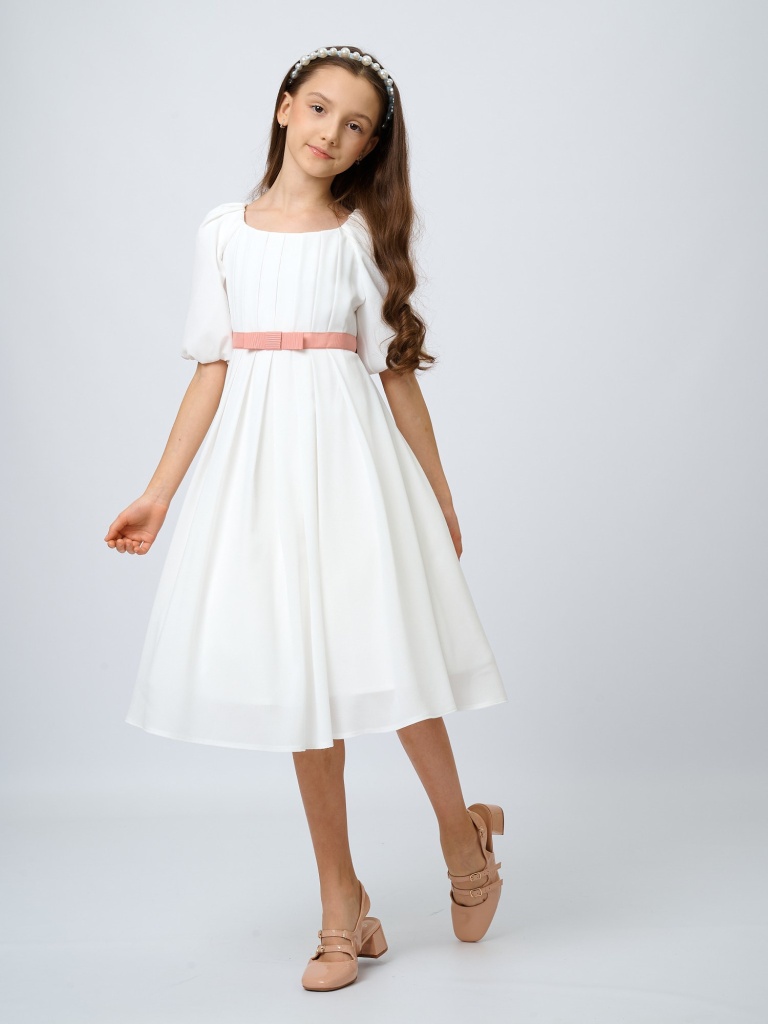 Изысканность, воздушность, нежность и легкость – все это про романтичное платье с драпировкой. Выполненное из невесомого крепа, оно позволит почувствовать себя настоящей принцессой из волшебной сказки. Драпировка на лифе и пояс с бантиком из репсовой ленты не оставят равнодушными ни одну юную любительницу нарядов.