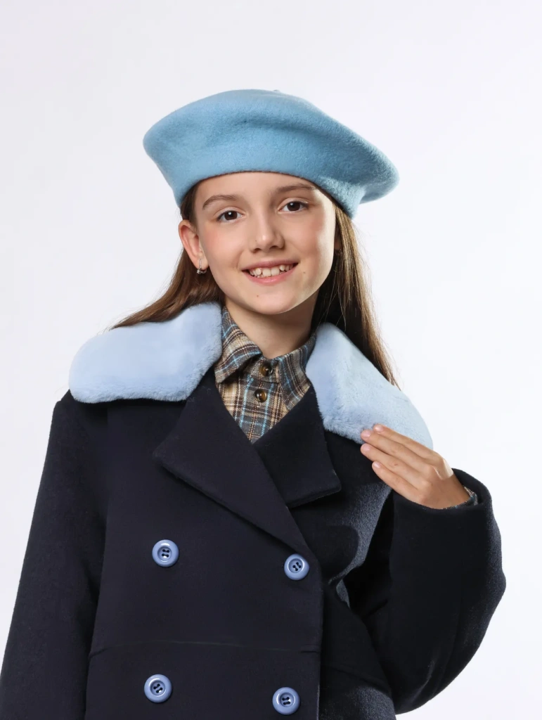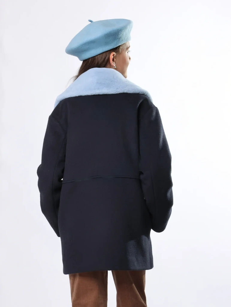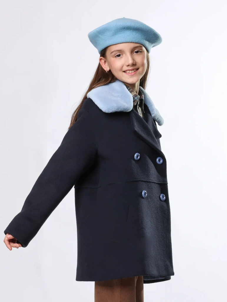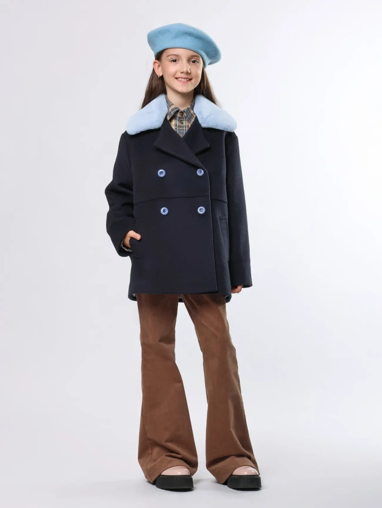 Пальто со съемным воротником и натуральным утеплителем в цвете: Синий