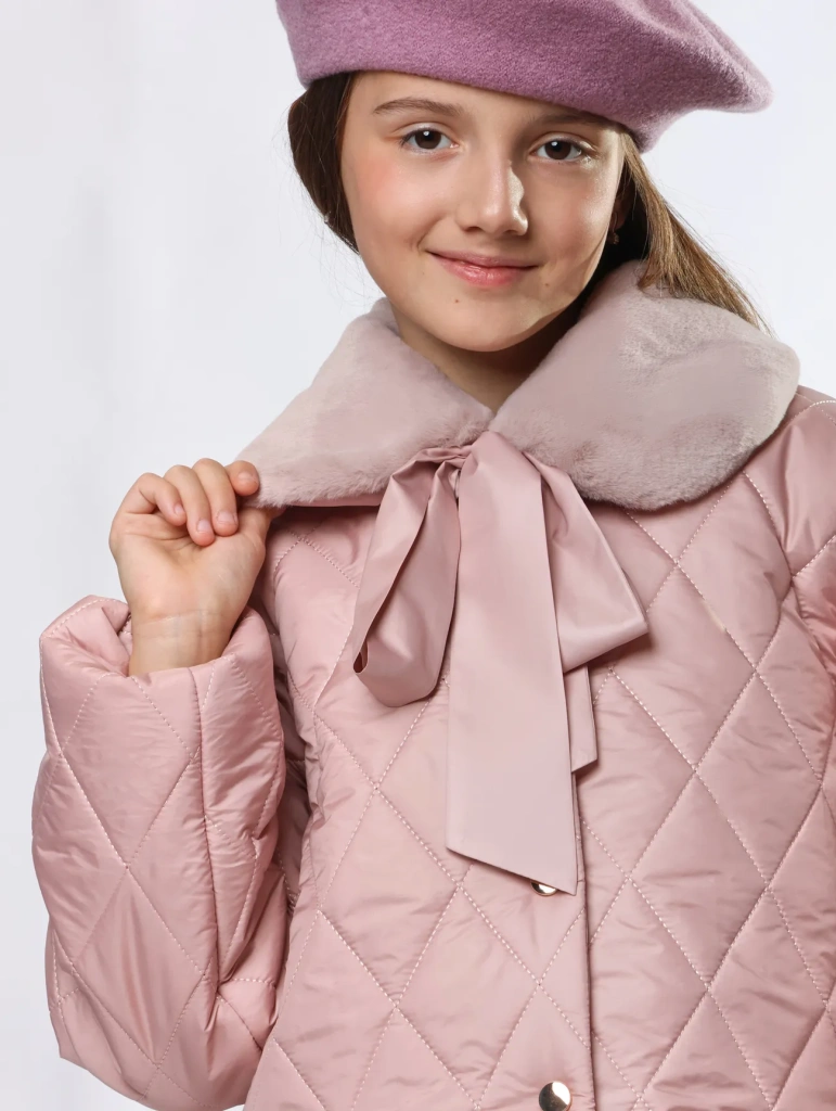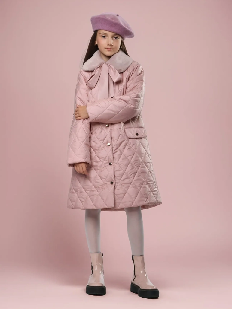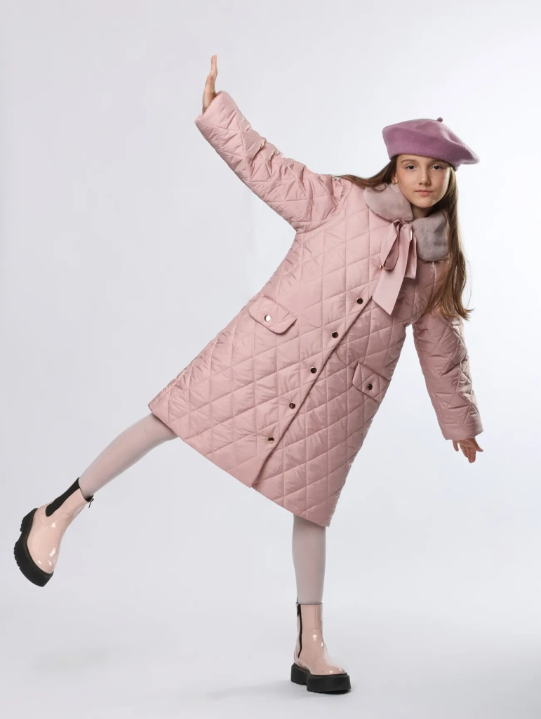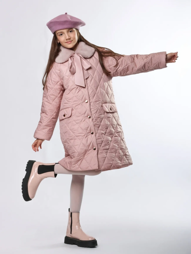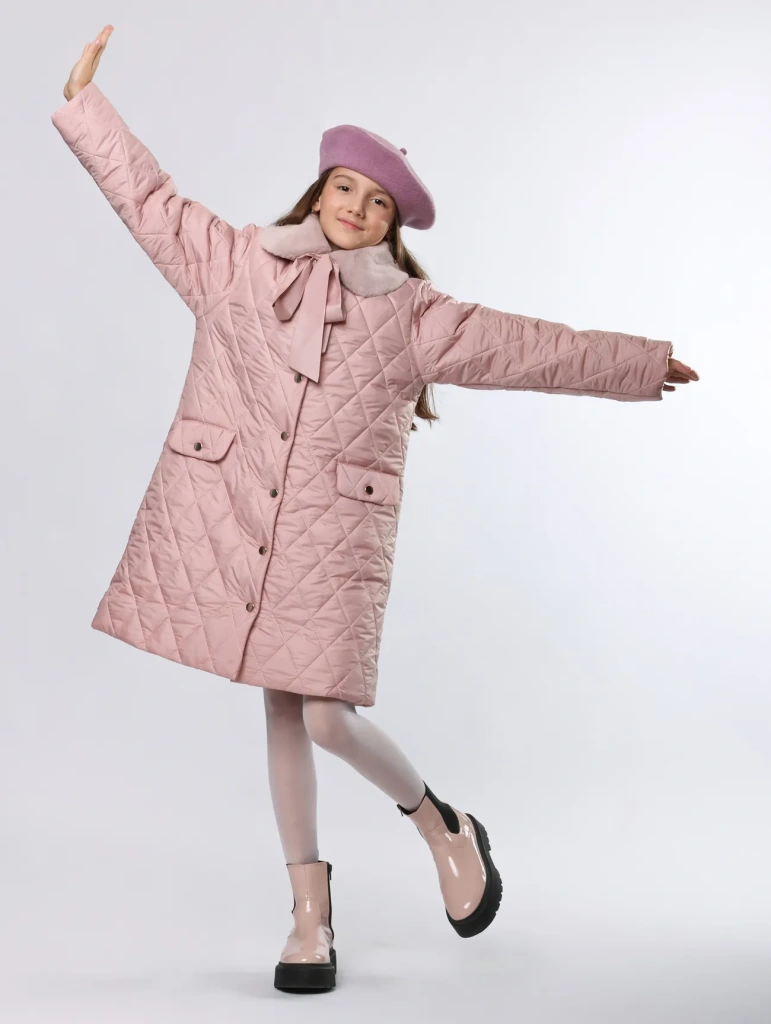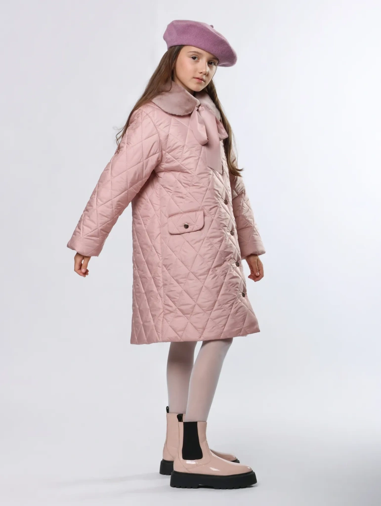 Демисезонное пальто со стеганным верхом и натуральным утеплителем. Идеально для температурного режима от +10 до -10 градусов. Модель сочетает в себе лаконичный дизайн, оптимальную длину, приятный цвет и акцентные детали в виде съемного мехового воротника и банта. Верхний слой пальто – ветронепроницаемый и влагоотталкивающий текстиль, материал хорошо держит форму и удобен в уходе. Внутренний слой – утеплитель шерстипон (60 % шерсти), который отлично сохраняет тепло, практичен в носке, не скатывается и не вылезает. Длина пальто позволяет носить его с брюками, с платьями и юбками.
