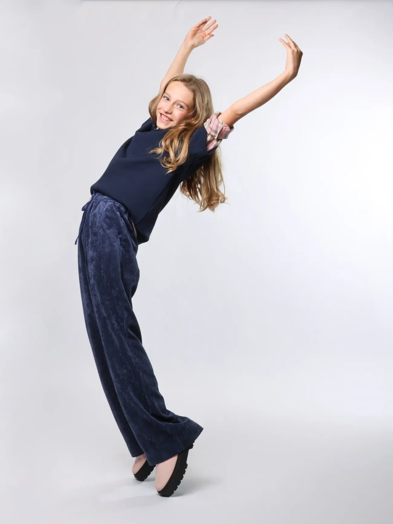 Брюки свободного кроя из вельвета Soft в цвете: Синий