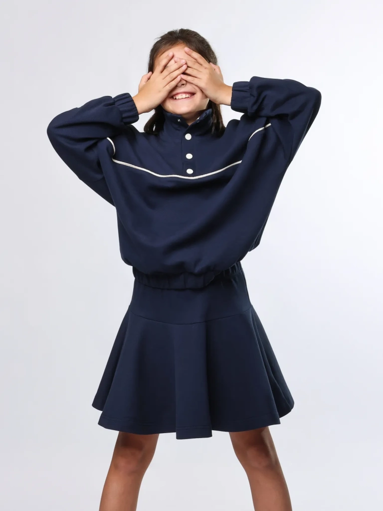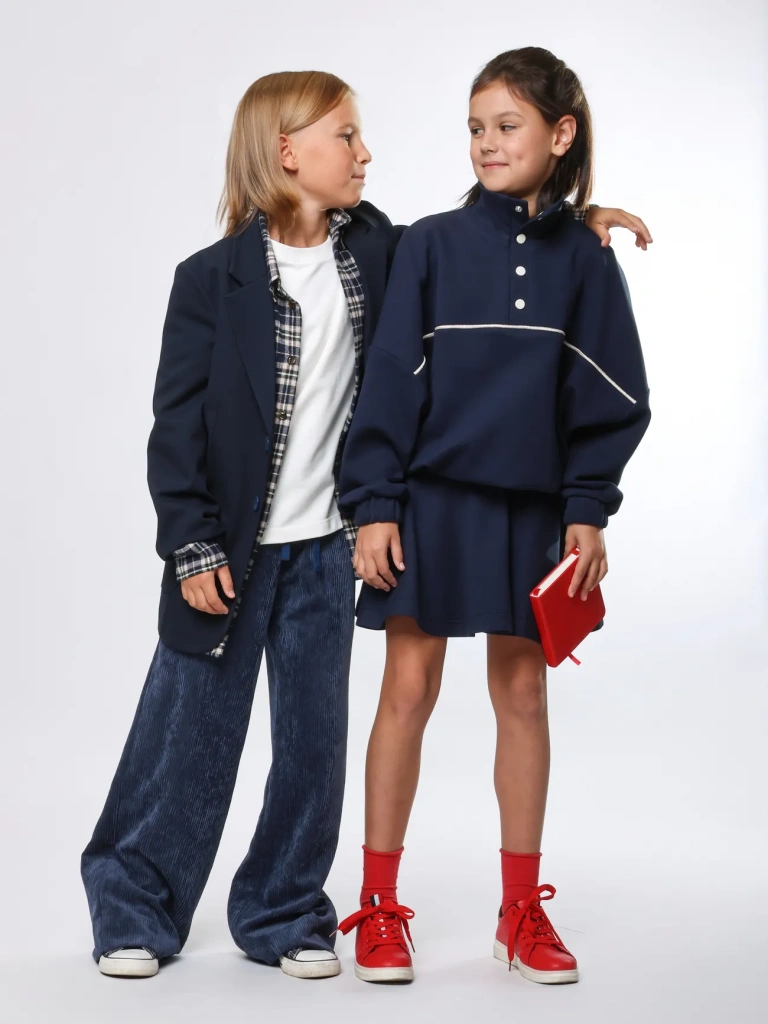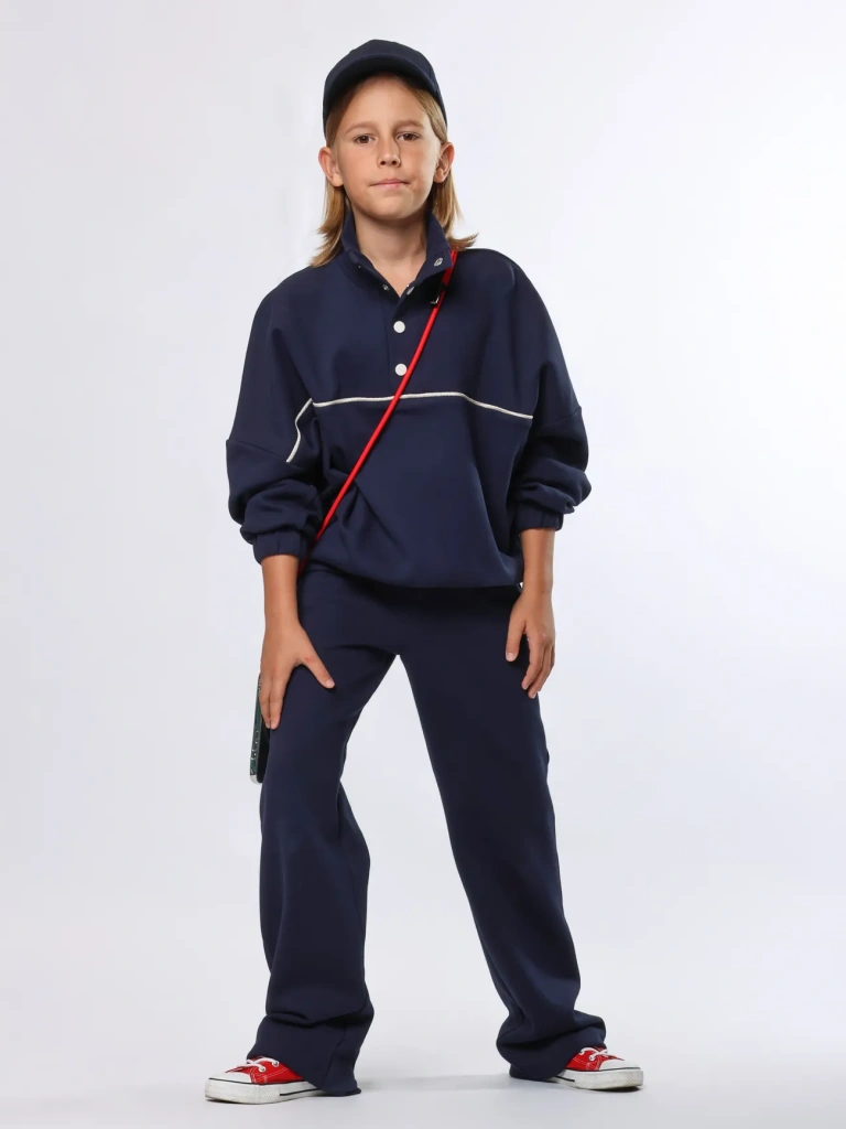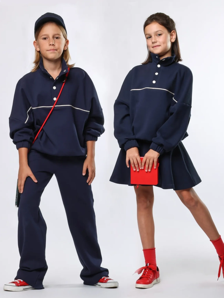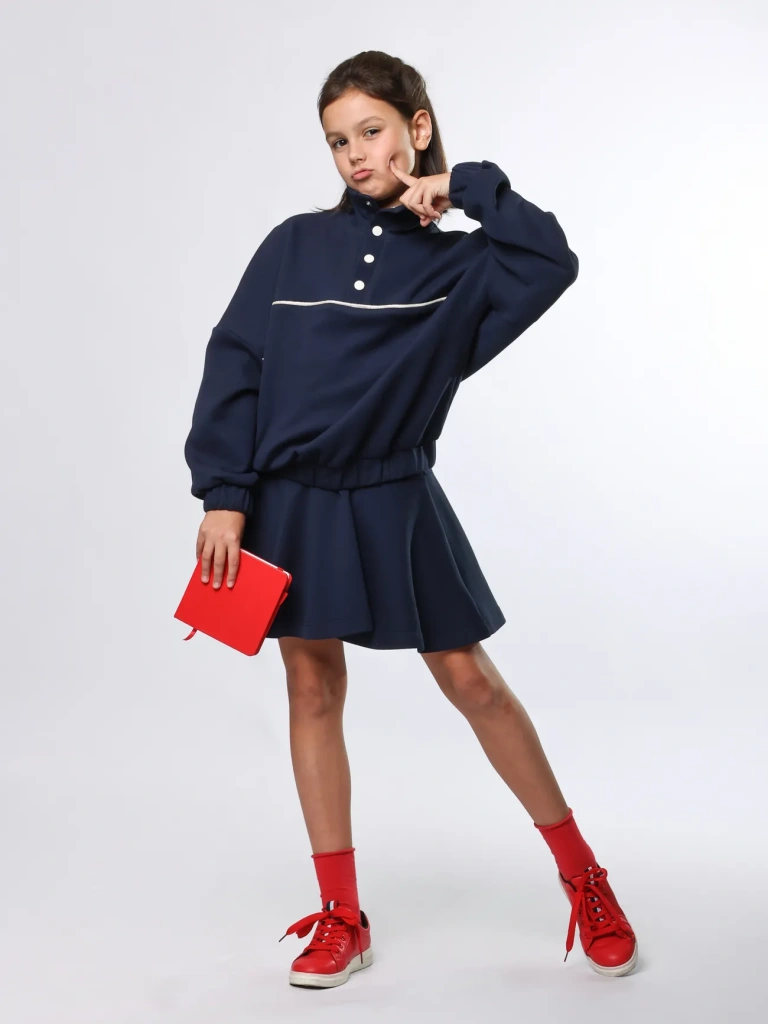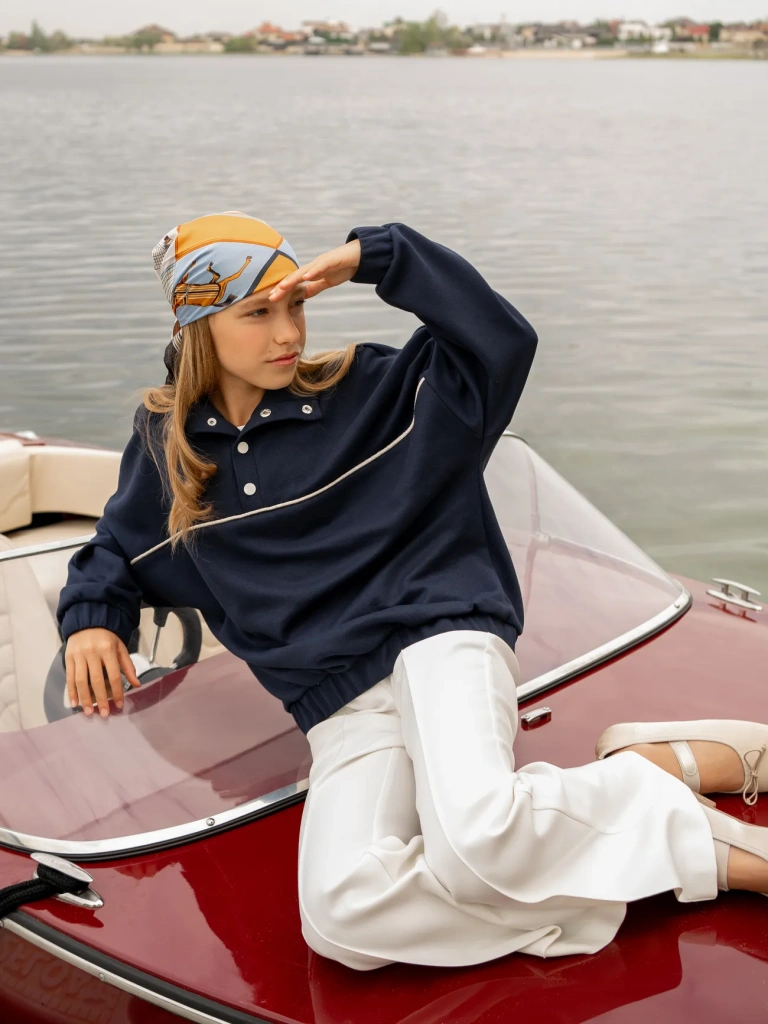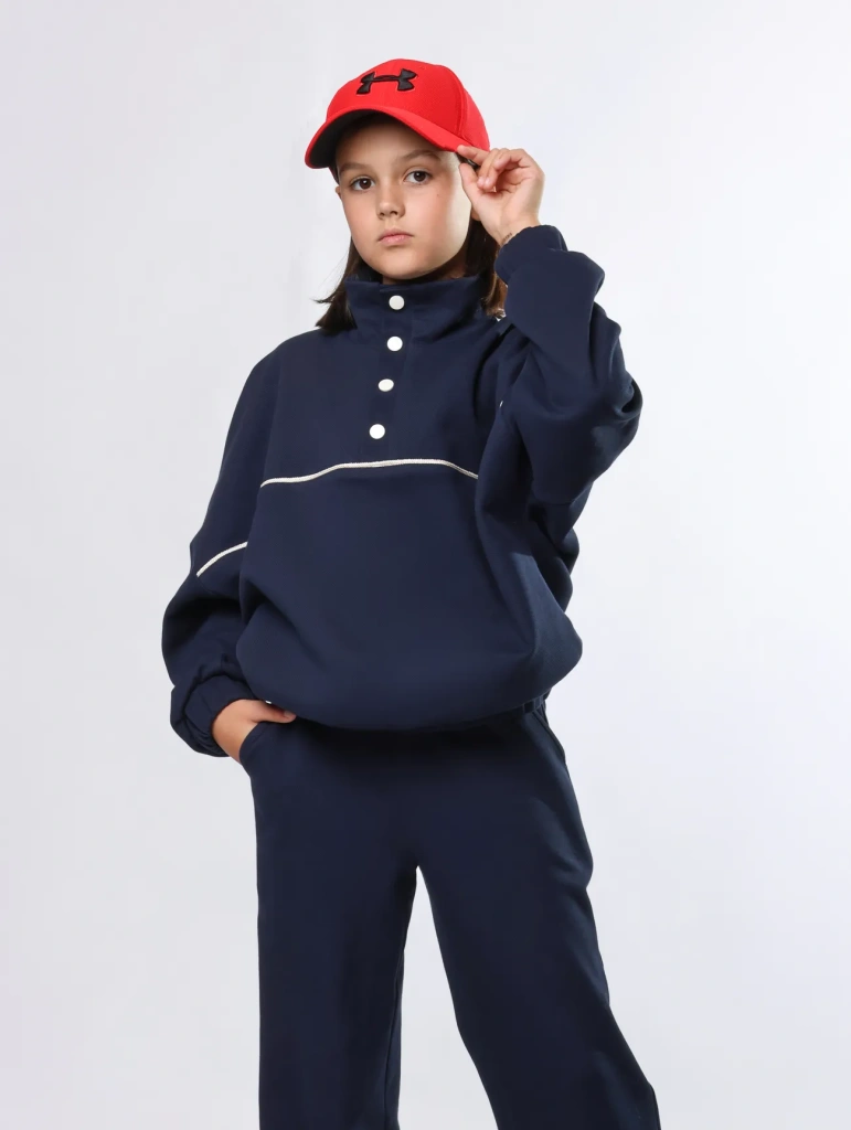 Трикотажный анорак с высоким воротником и кнопками в ретро-стиле. Контрастная отделка подчеркивает современный характер модели, а свободный силуэт дарит комфорт и свободу движений. Идеально для динамичных образов.