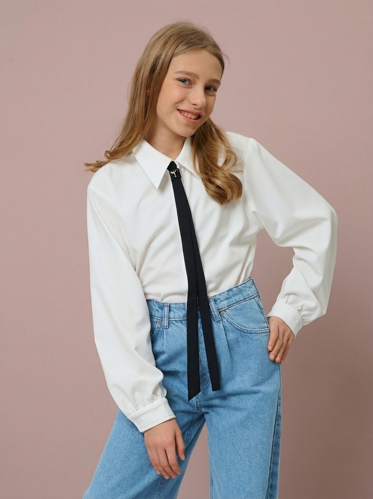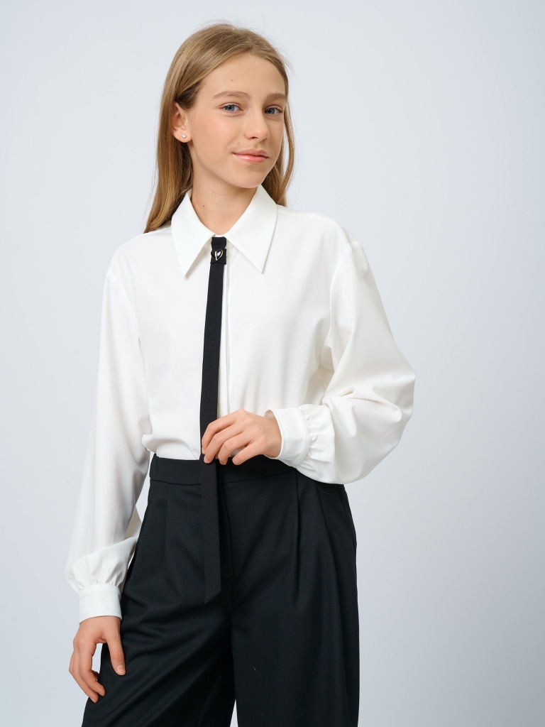 Рубашка с галстуком станет универсальным предметом гардероба для тех, кто предпочитает классические образы, но любит комфорт и интересные акценты. Выполненная из крепа, рубашка приятная к телу и не требует особого ухода. С галстуком классическая рубашка приобретает нарядный вид и подойдет для линеек и других торжественных мероприятий; без галстука – становится отличным вариантом на каждый день.