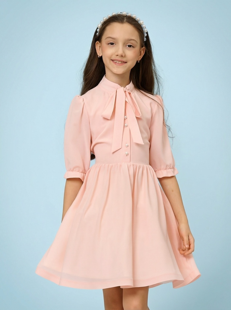 Платье с бантом – любовь с первого взгляда для самых милых кокеток. Лаконичное, но универсальное за счет акцентов, платье подойдет для утренников, выпускных или других праздников. Не нужно больше выбирать между элегантностью и комфортом, «милотой» и кокетством, ведь в этом платье сочетается все!
