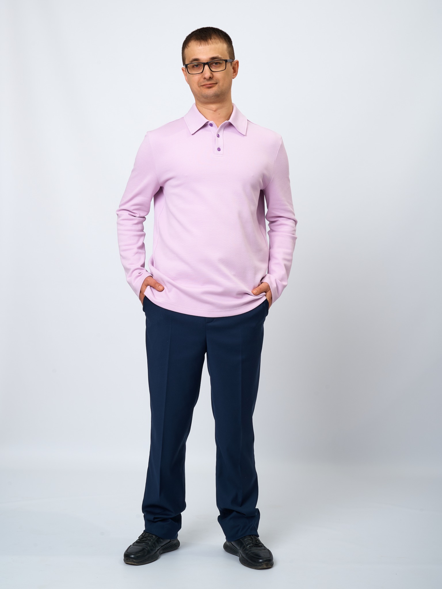 Поло с длинным рукавом унисекс в цвете: Светло-фиолетовый
