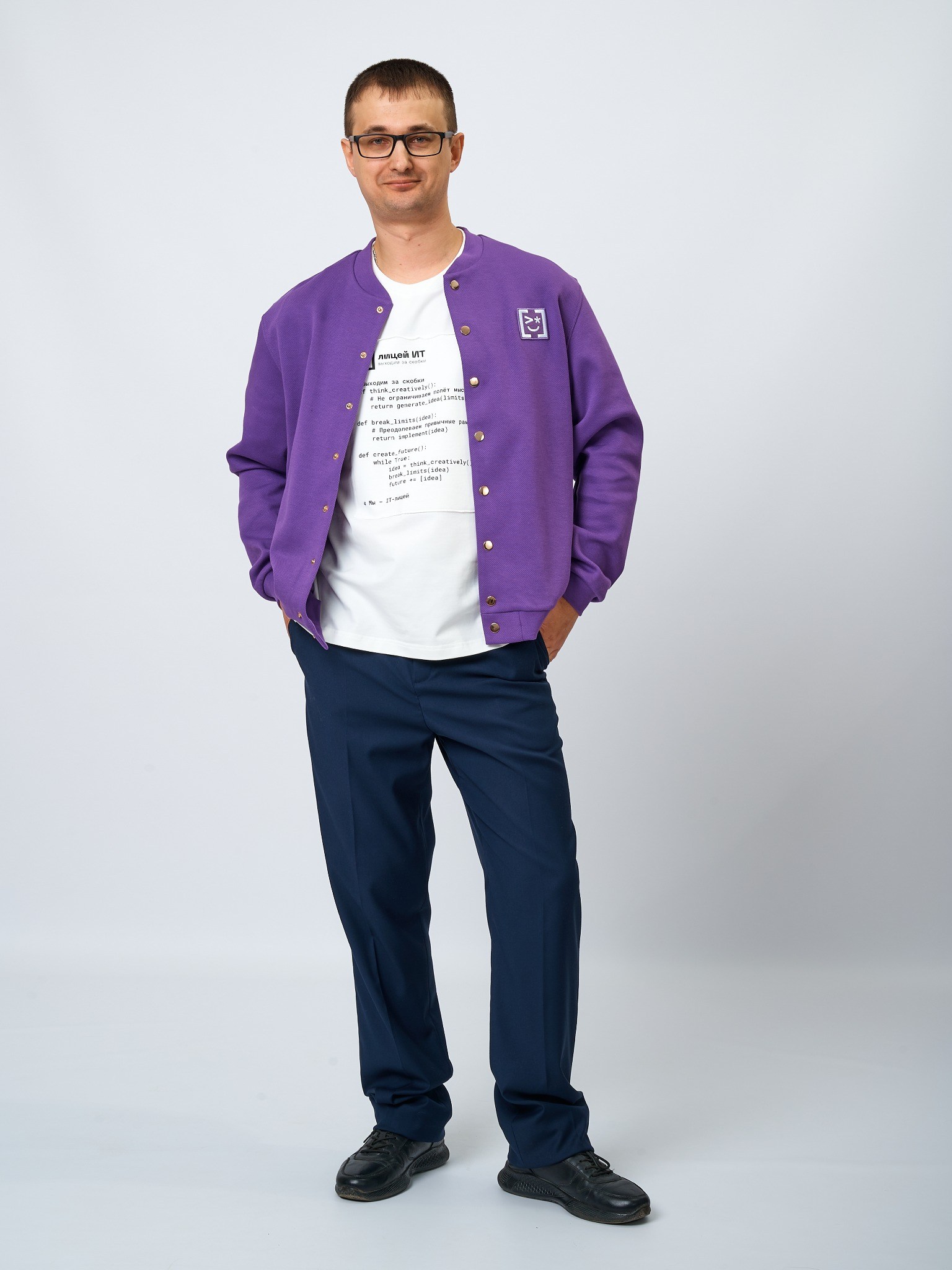 Бомбер из фактурного трикотажа в цвете: Фиолетовый