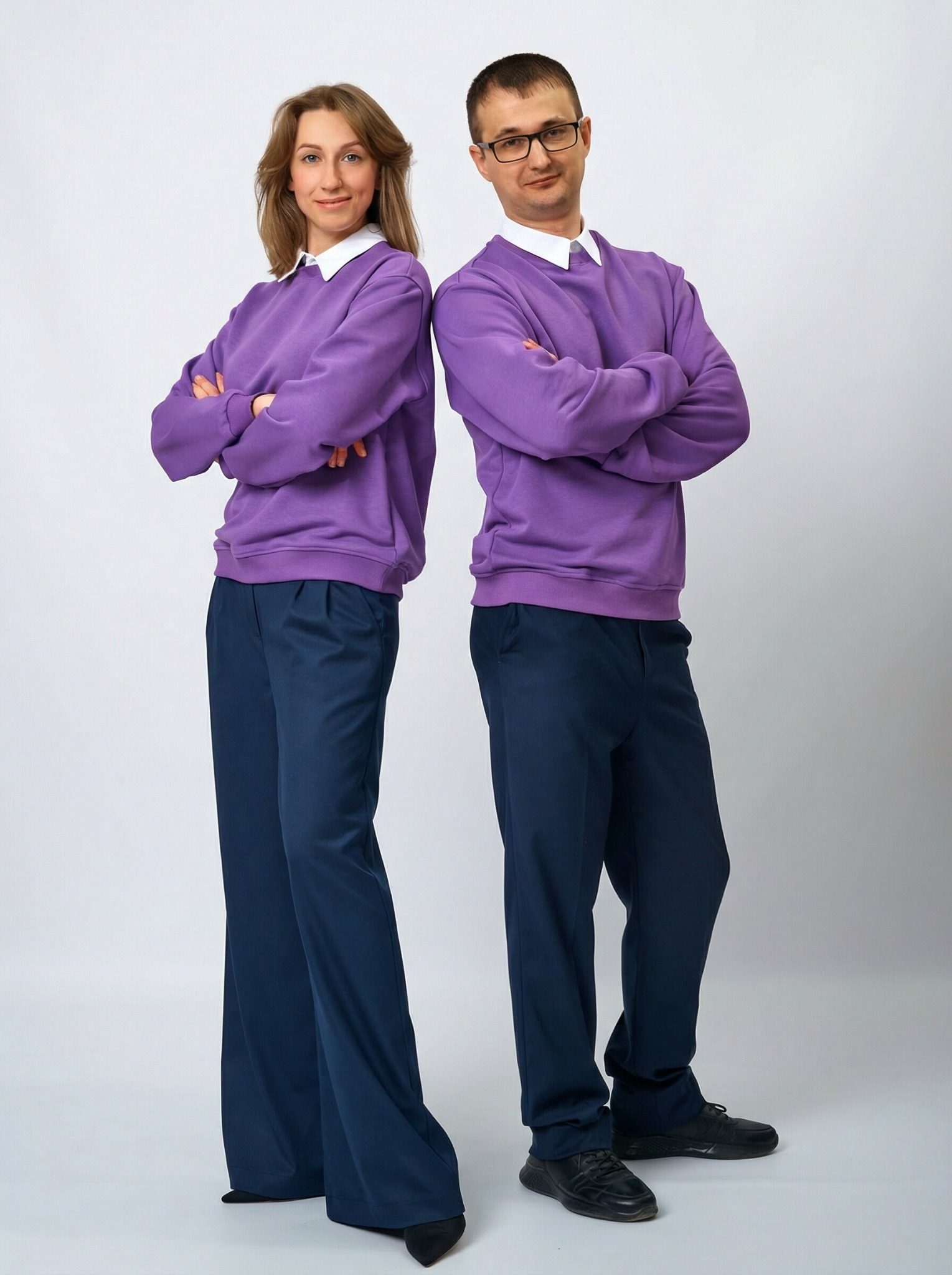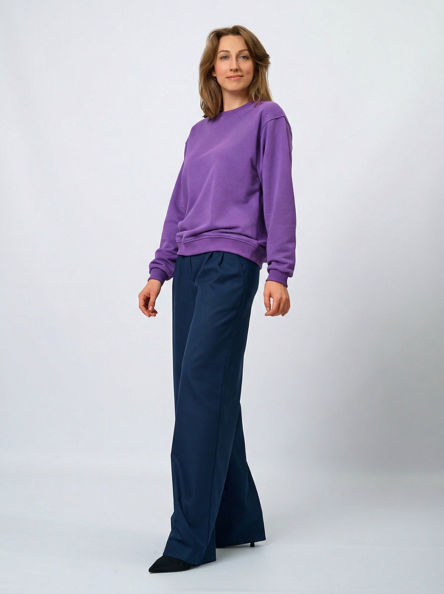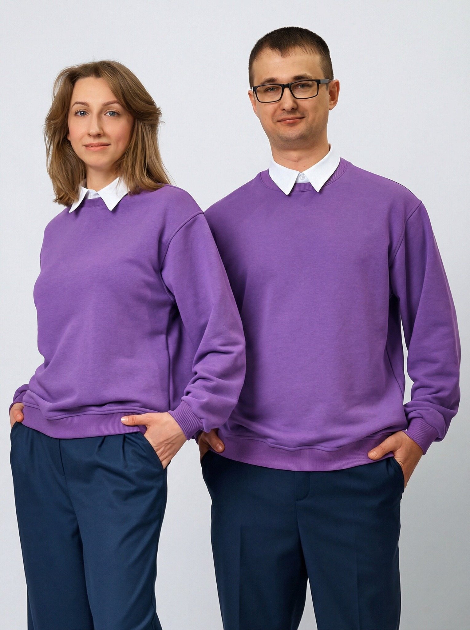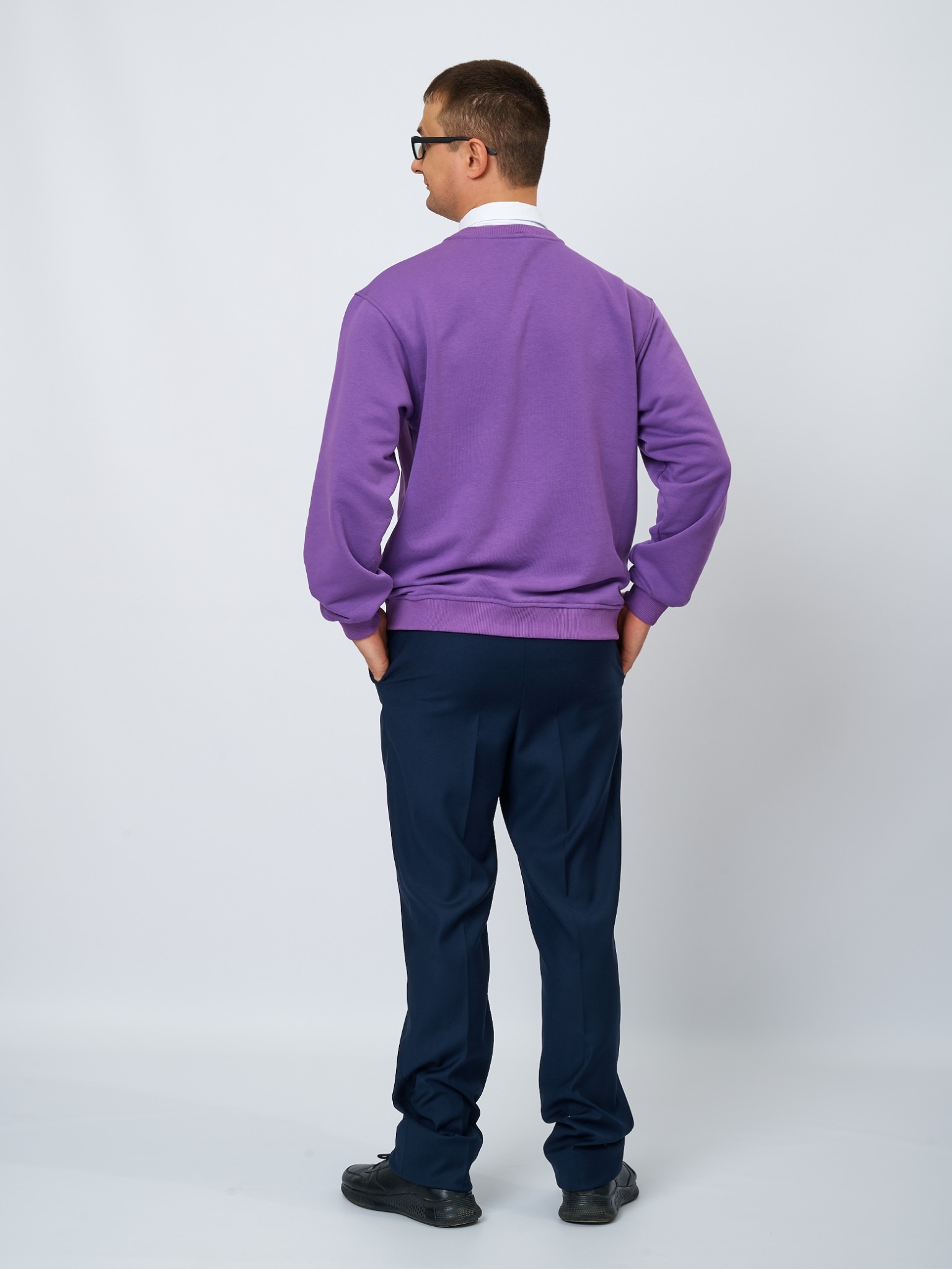 Свитшот оверсайз со съемным воротником и шевроном в цвете: Фиолетовый