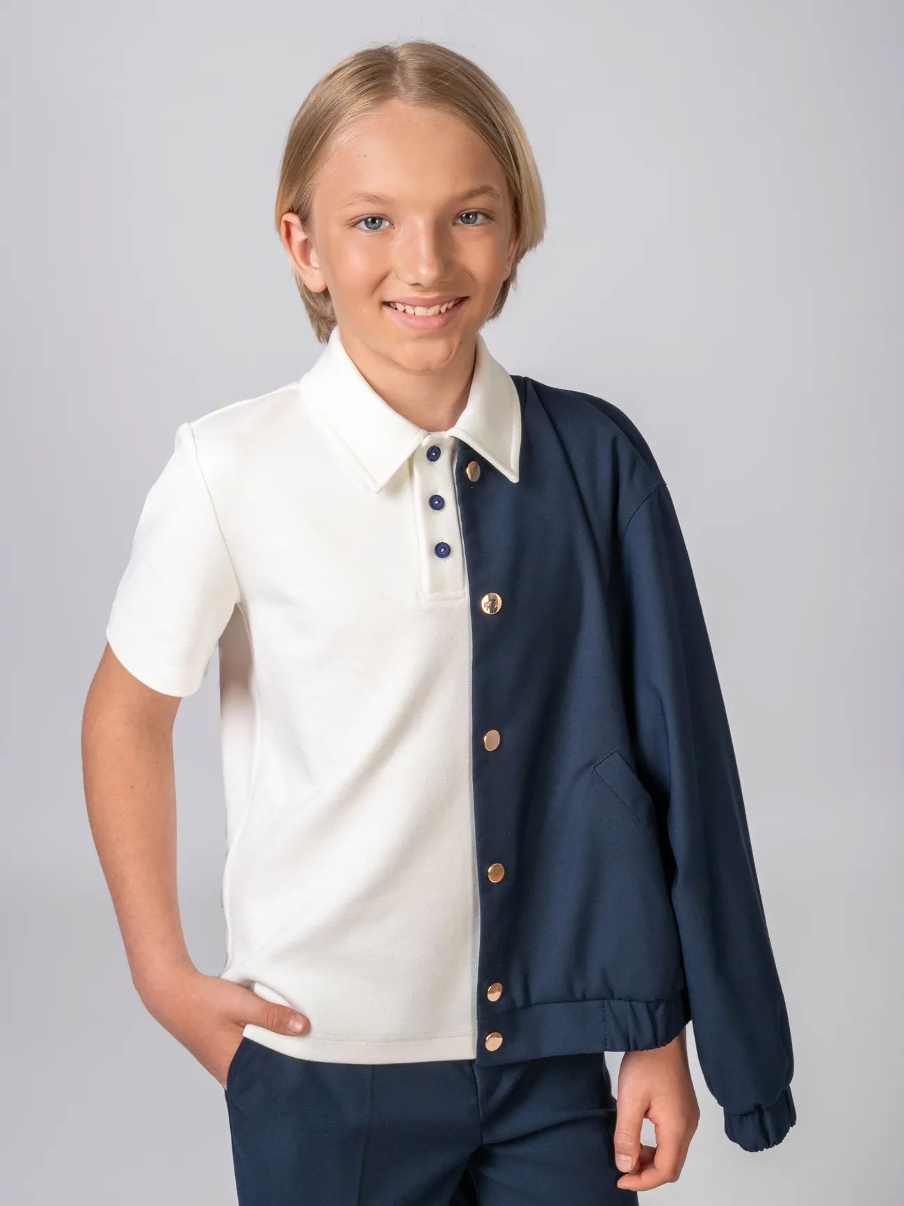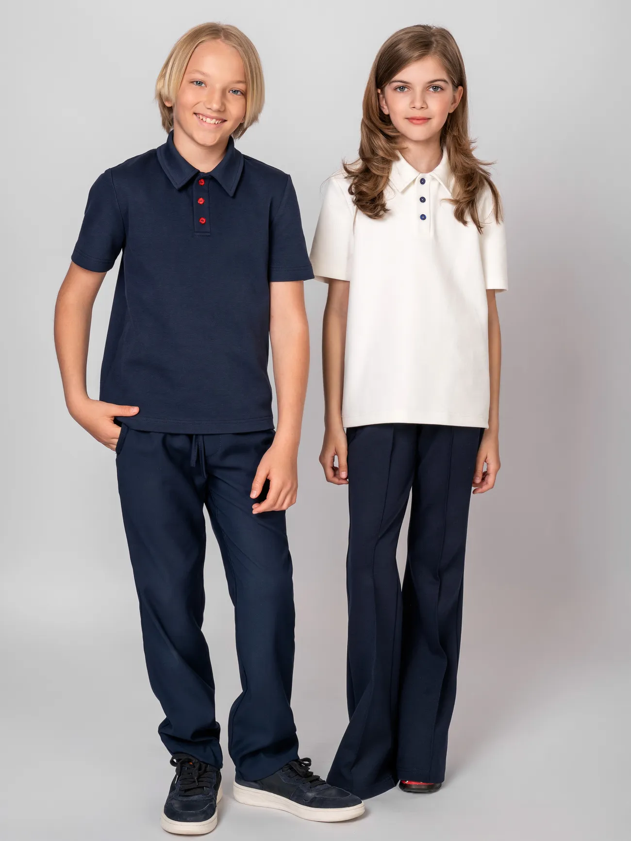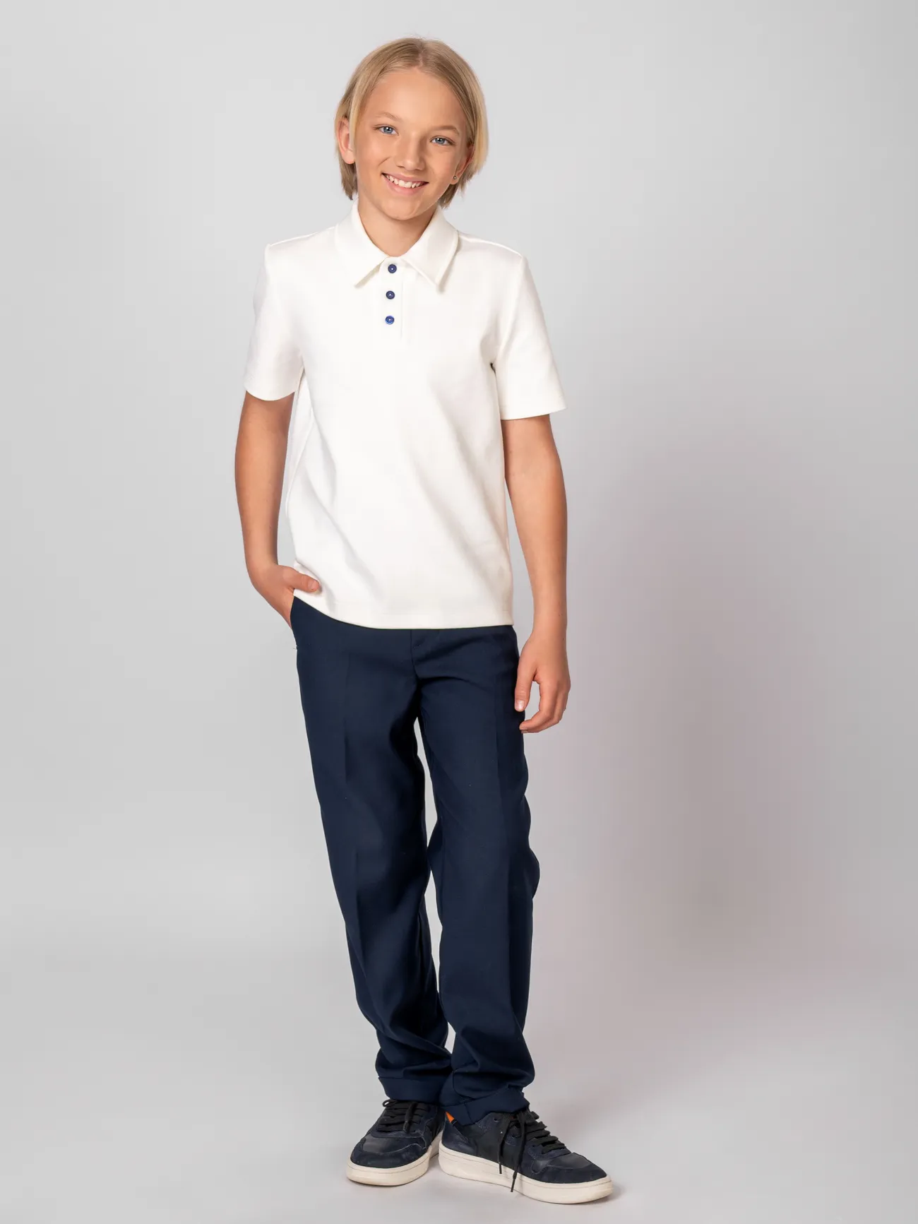 Базовое поло унисекс - практичный и комфортный выбор для школы и активного повседневного образа. Изготовлена из мягкого дышащего трикотажа, который приятен к телу и хорошо держит форму. Классический отложной воротник, планка с пуговицами и прямой крой делают эту модель универсальной - она одинаково хорошо подходит и девочкам, и мальчикам. Отлично сочетается с брюками, юбками, пиджаками.