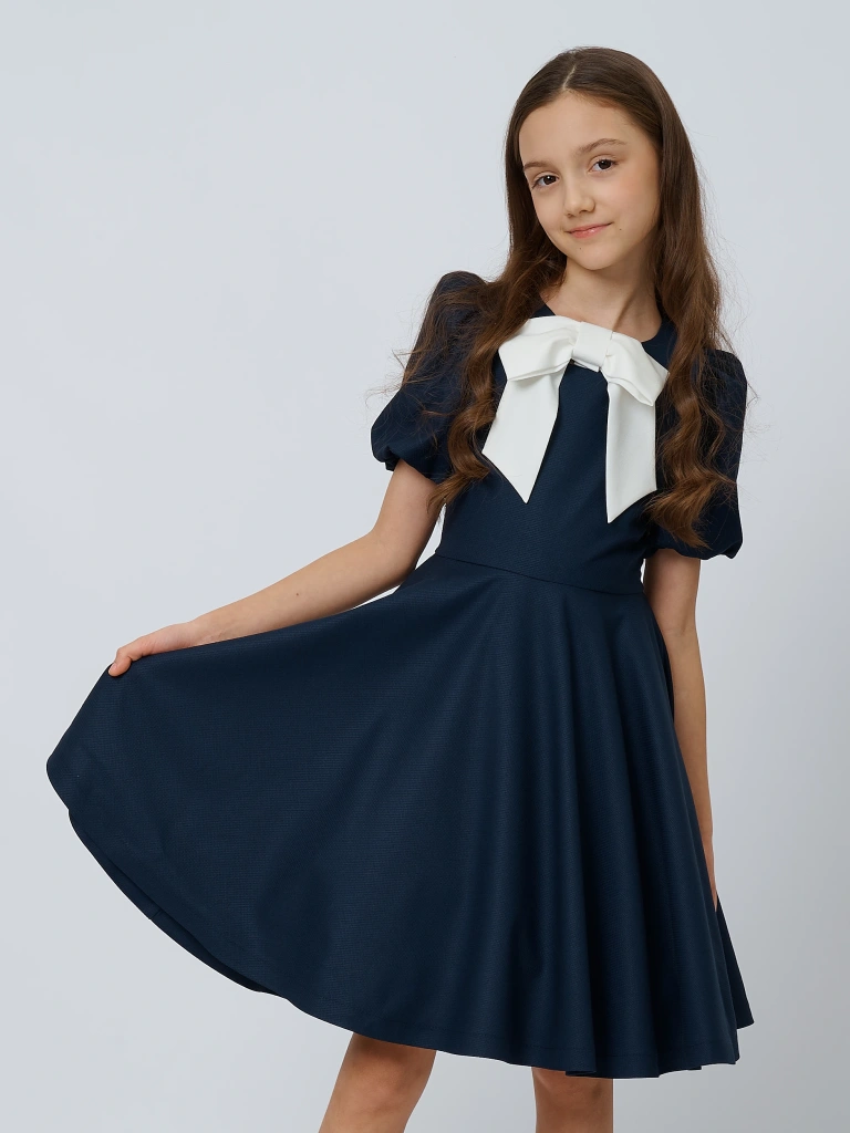 Платье со съемным бантом – одна из самых элегантных школьных моделей. Само по себе платье достаточно сдержанное и лаконичное, а роскошный съемный белый бант добавляет изюминку. Платье отлично подойдет как для торжественной линейке, так и для повседневных школьных занятий. Для создания более нарядного образа рекомендуем подъюбник (Арт. 7205111)