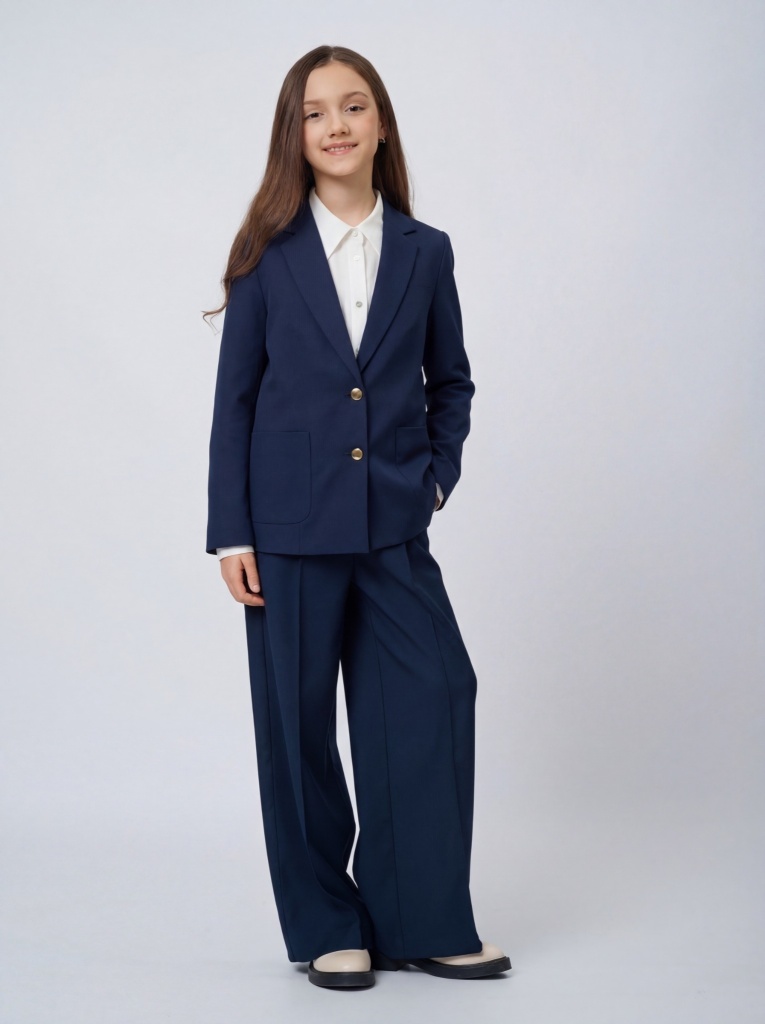 Жакет выполнен из премиальной костюмной ткани, сохраняющей отличный внешний вид даже при ежедневной носке.