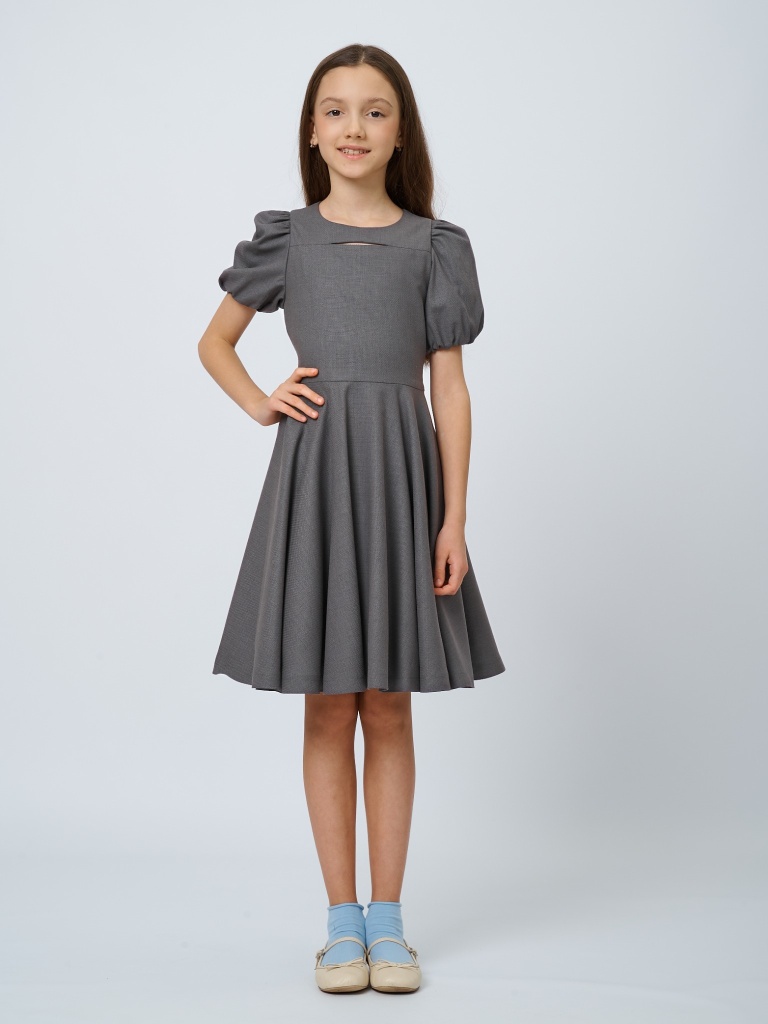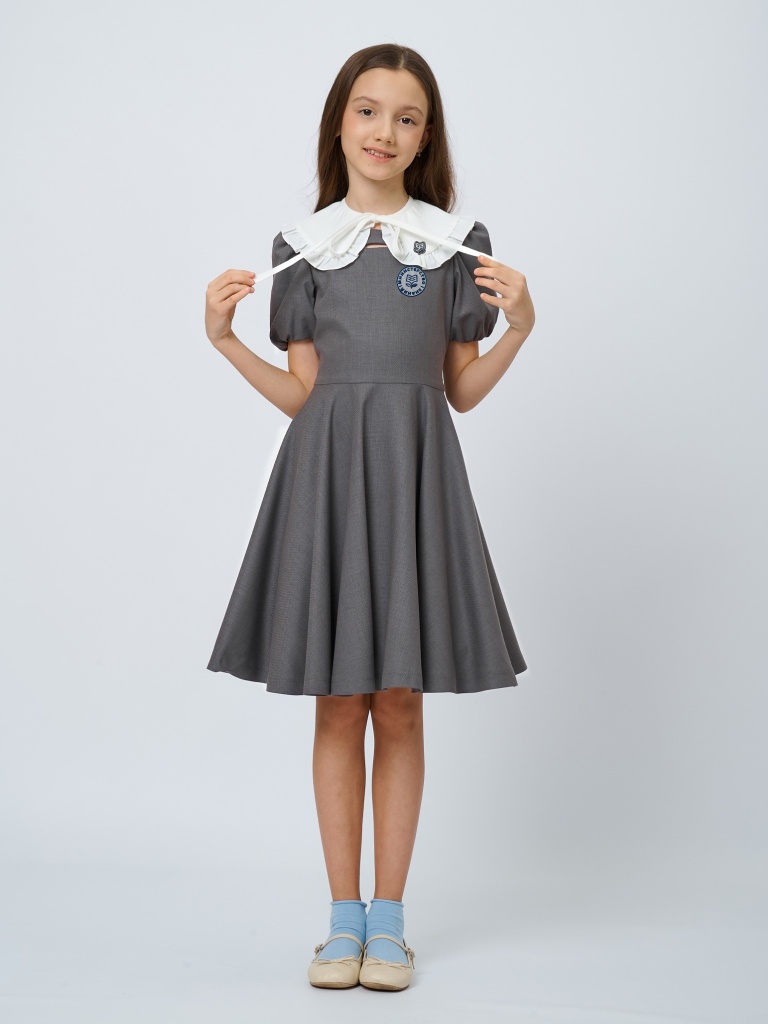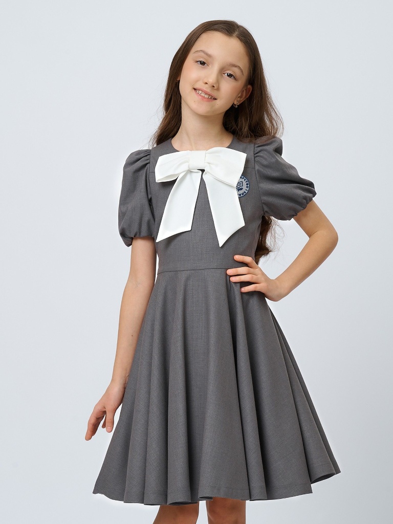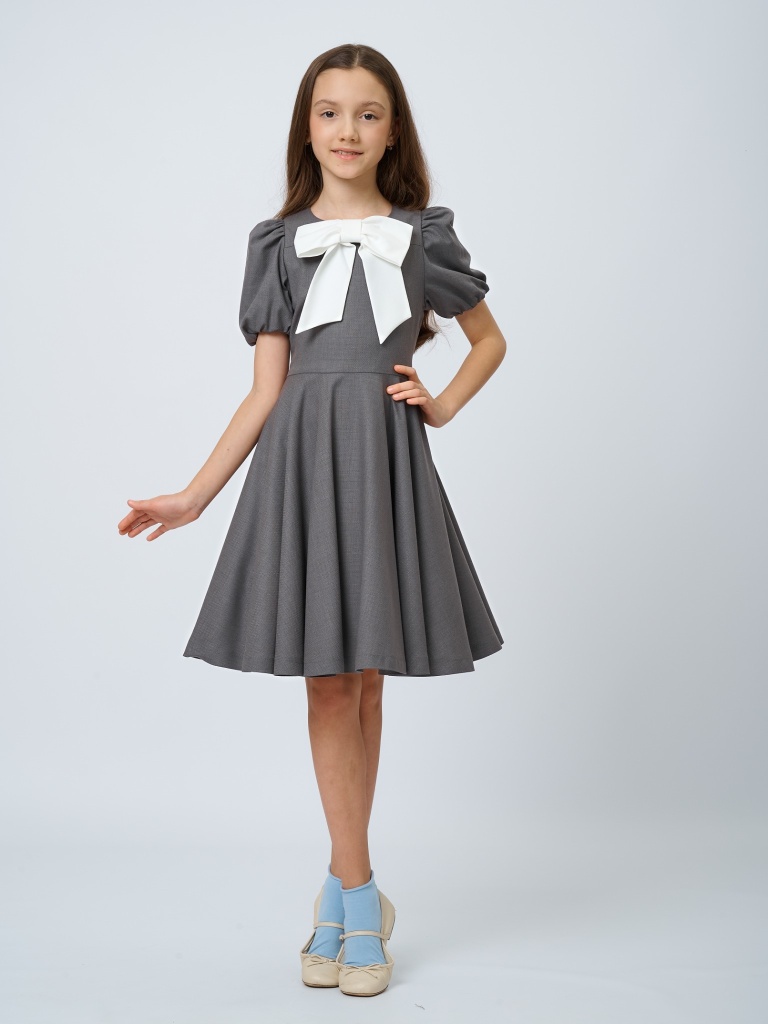 Платье со съемным бантом с шевроном в цвете: Серый