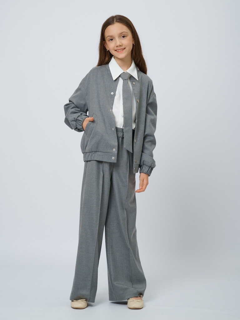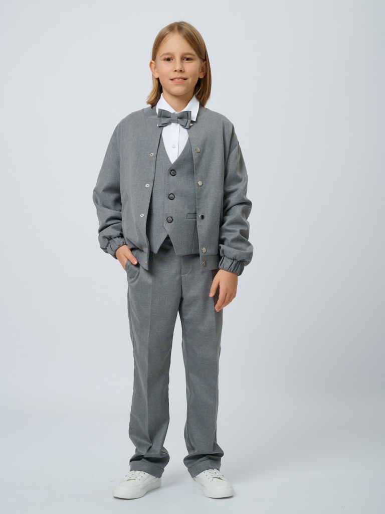 Бомбер из костюмной ткани на кнопках с шевроном в цвете: Серый