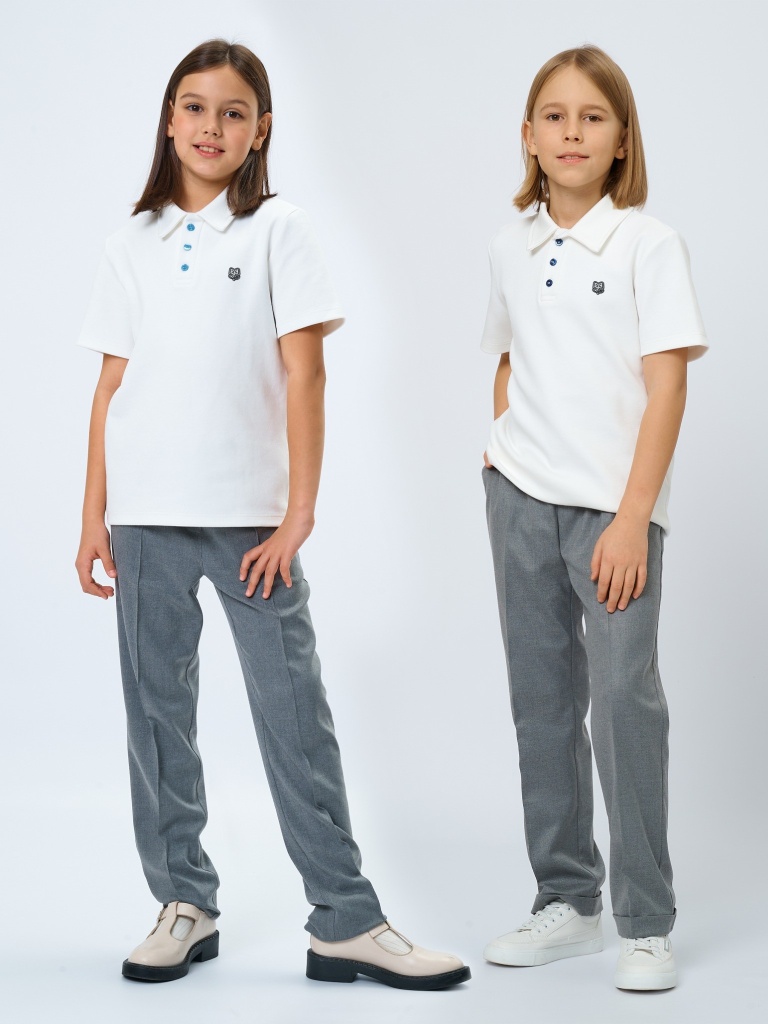 Базовое поло унисекс - практичный и комфортный выбор для школы и активного повседневного образа. Изготовлена из мягкого дышащего трикотажа, который приятен к телу и хорошо держит форму. Классический отложной воротник, планка с пуговицами и прямой крой делают эту модель универсальной - она одинаково хорошо подходит и девочкам, и мальчикам. Отлично сочетается с брюками, юбками, пиджаками.