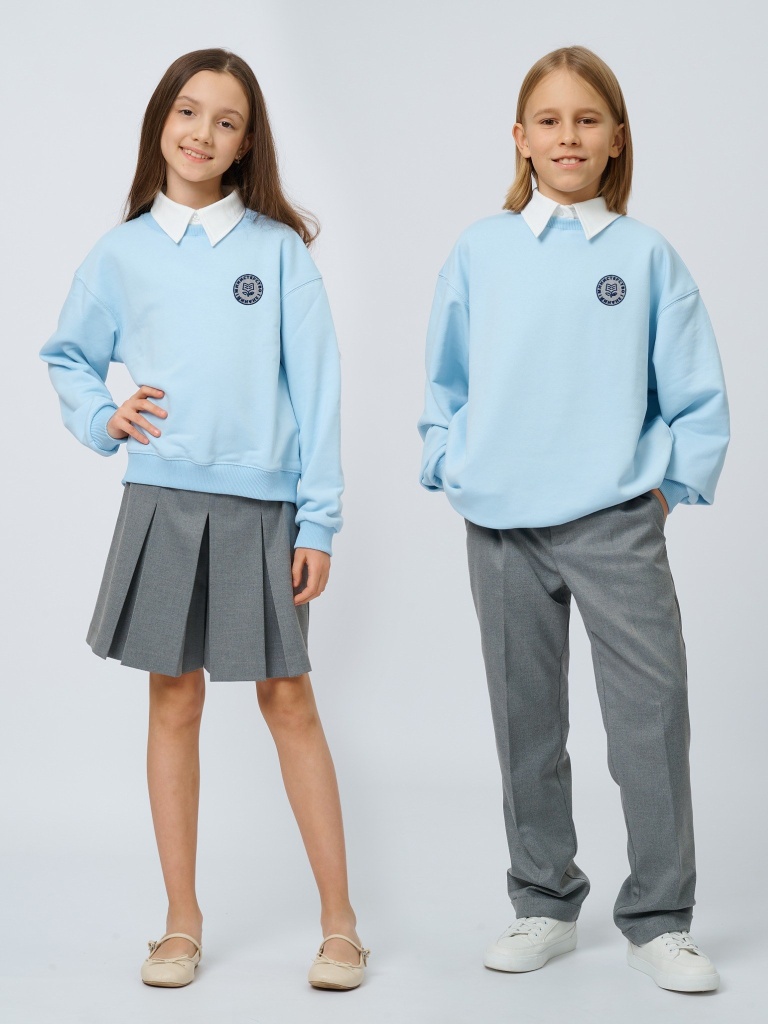 Свитшот со съемным воротником с шевроном в цвете: Голубой