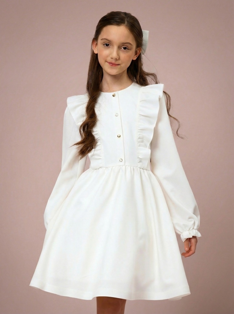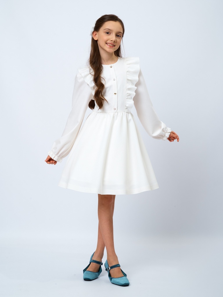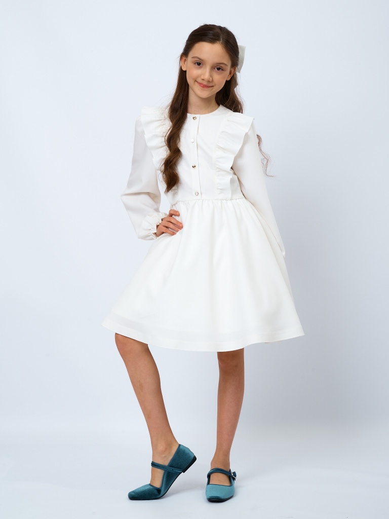 Романтичное платье с оборками - идеальная модель для поклонниц стиля baby doll. Изящное и элегантное, платье создает красивый силуэт благодаря объемному верху с оборками и воздушному низу в виде пышной юбки. Детали: